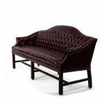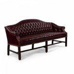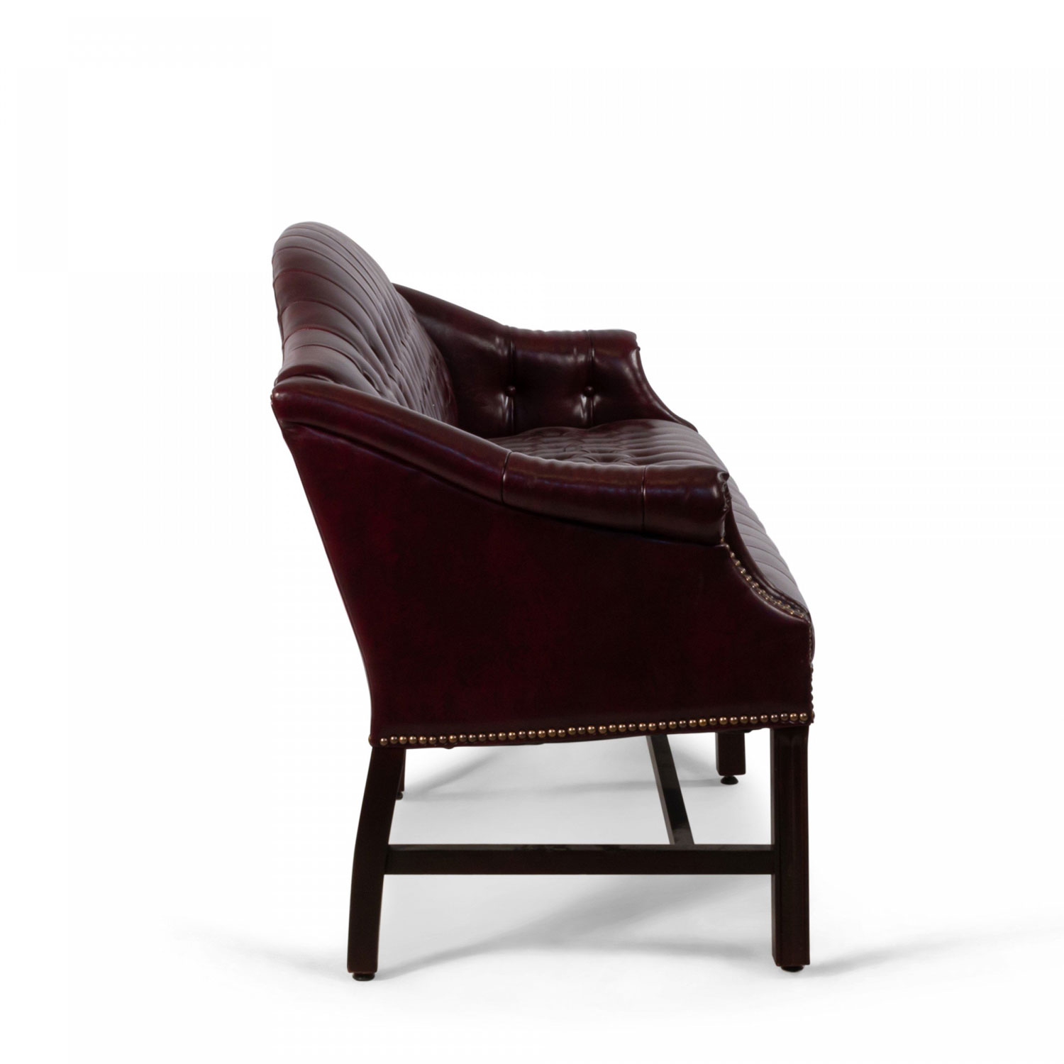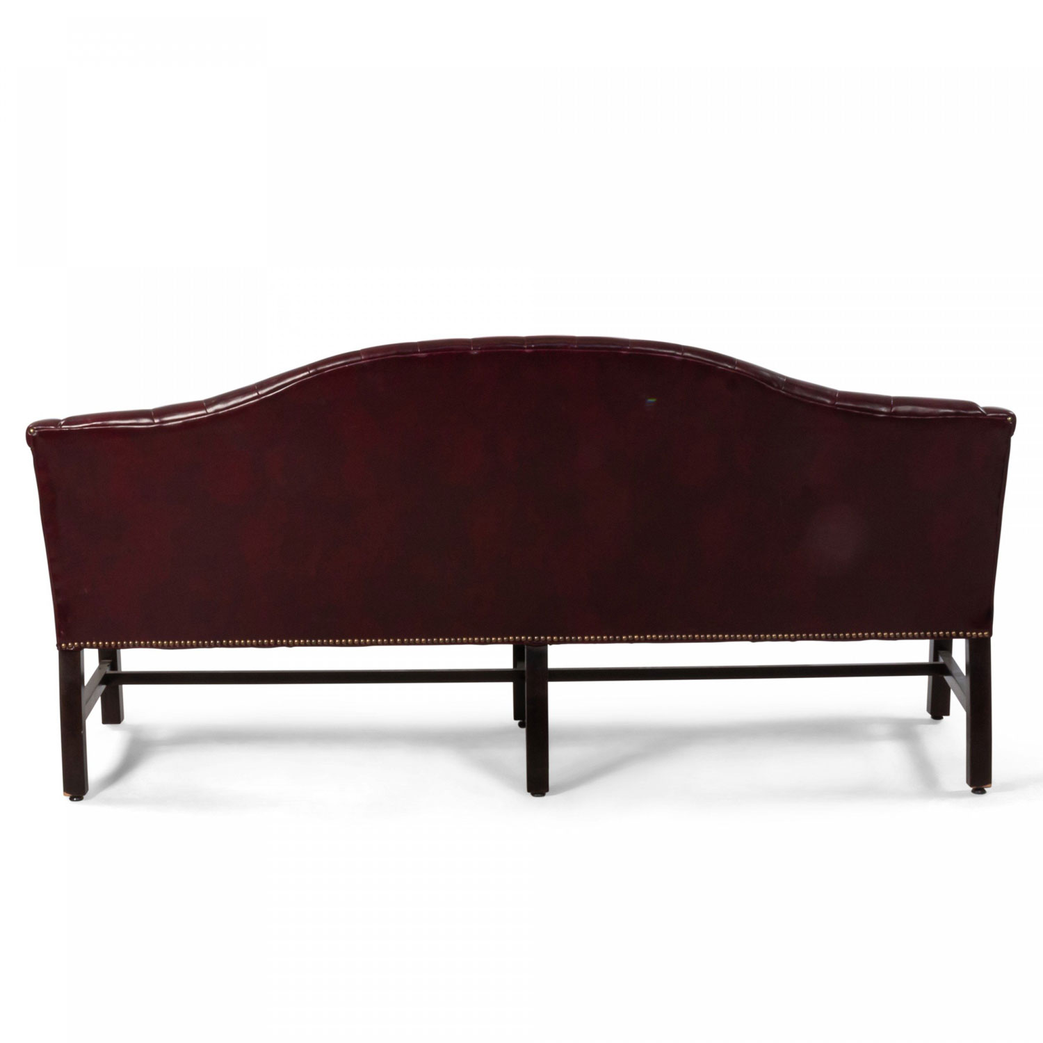Chippendale Style Burgundy Leather Camelback Button Tufted Sofa