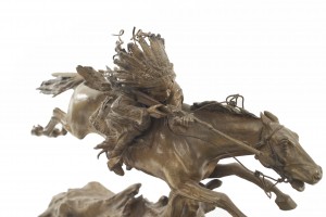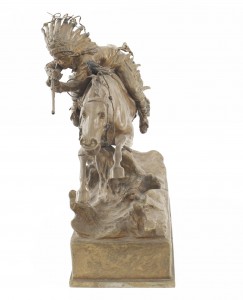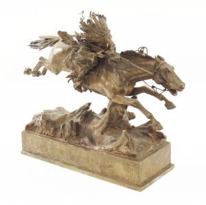 Austrian (19/20th Cent) bronze figure of a Native American with rifle riding on horse (signed C. KAUBA).