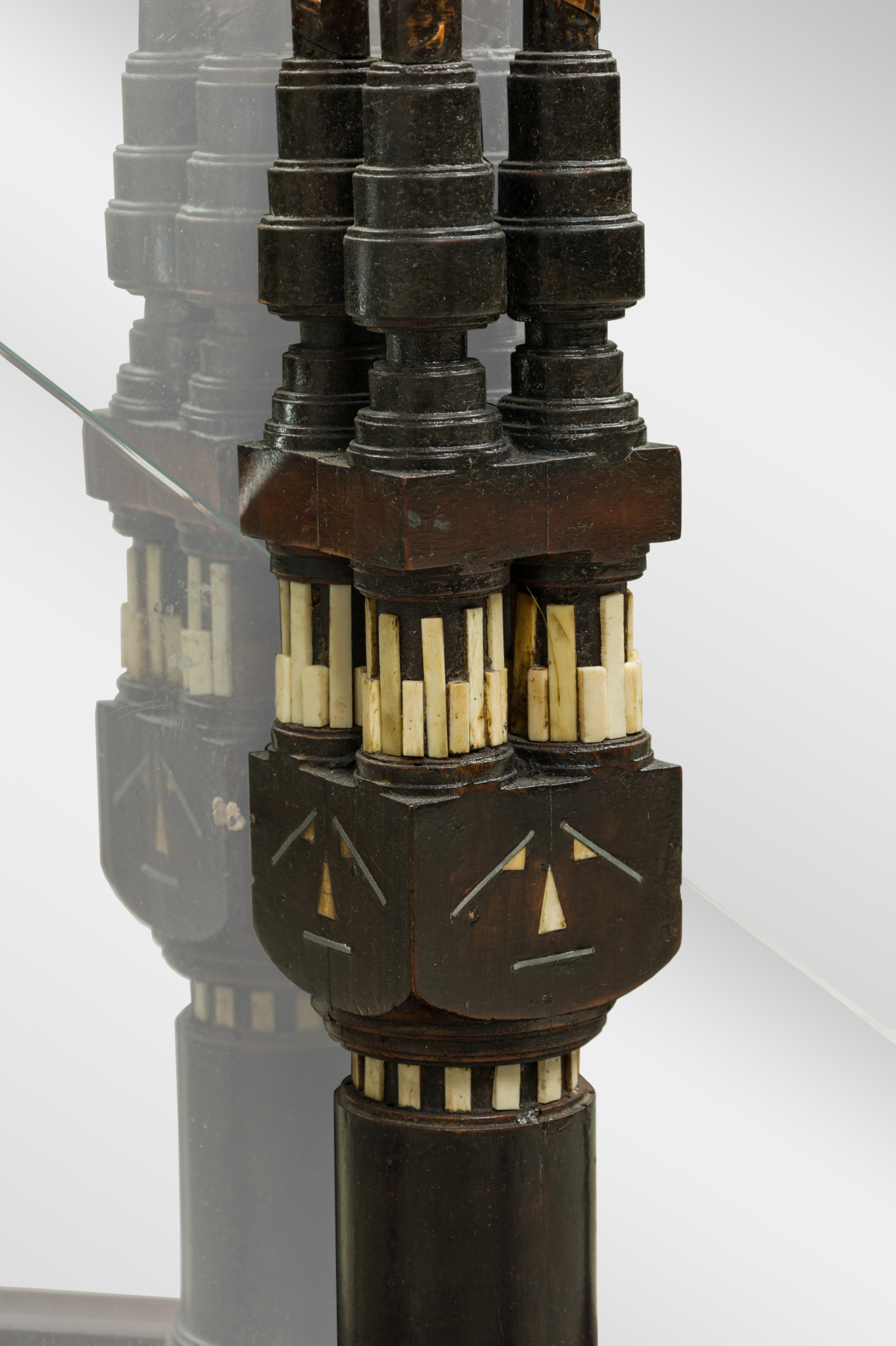 Carlo Bugatti (1856-1940) was an Italian furniture and decorative arts designer, known for his innovative and avant-garde creations. Born on February 2, 1856, in Milan, Italy, Bugatti came from a family of artists and craftsmen. Bugatti initially trained as an architect, studying at the Brera Academy in Milan. However, he soon discovered his passion for furniture design and began experimenting with various styles and materials. Inspired by the Art Nouveau movement, Bugatti incorporated intricate details, organic forms, and exotic materials into his designs. Bugatti's unique style was characterized by a fusion of different cultural influences, including Islamic, Moorish, and Oriental designs. He often incorporated elements such as intricate inlays, colorful enamels, and exotic woods into his furniture pieces, creating a harmonious blend of functionality and artistic expression. Bugatti gained recognition for his work in the late 19th and early 20th centuries, exhibiting his creations at various international exhibitions. His designs were highly sought after by collectors and patrons of the arts, who appreciated his innovative approach and attention to detail. In addition to furniture design, Bugatti also experimented with other decorative arts, including ceramics, textiles, and metalwork. He collaborated with renowned artisans and craftsmen to bring his designs to life, ensuring the highest level of craftsmanship and quality. Bugatti's career reached its peak in the early 1900s when he showcased his work at the prestigious Paris Salon. His designs received critical acclaim and were praised for their originality and artistic merit. However, as the popularity of Art Nouveau waned, Bugatti's designs fell out of favor, and he gradually faded into obscurity. Despite his later years being marked by financial difficulties and a decline in popularity, Bugatti's contributions to the world of furniture and decorative arts remain significant. His innovative designs continue to inspire contemporary artists and designers, and his works can be found in museums and private collections worldwide. Carlo Bugatti passed away on April 1, 1940, leaving behind a rich legacy of artistic expression and a lasting impact on the world of furniture and decorative arts. His designs continue to be admired for their unique aesthetic and timeless appeal.