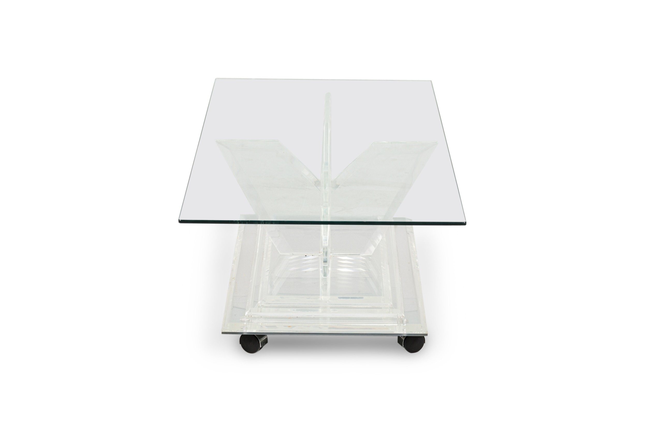 Style: Mid-Century Materials & Techniques: Lucite, mirror Category: Tables Condition: Some wear to finish Good; Wear consistent with age and use