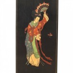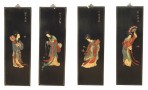 Set of 4 Chinese Black Lacquer Geisha Screen Panels