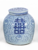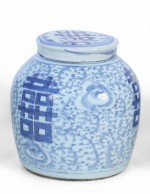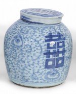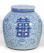 Chinese Blue and White Character Lidded Ginger Jar Vase