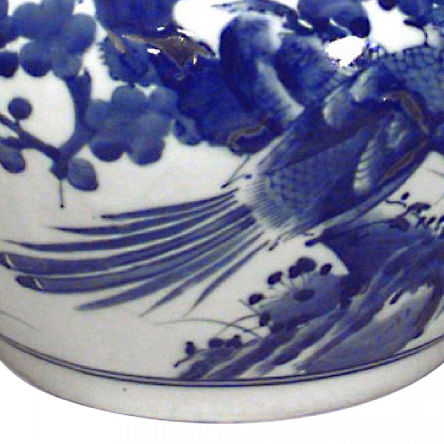 Asian Chinese-style (20th Century) small blue and white porcelain cachepot with bird and floral design