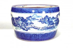2 Asian Chinese-style (20th Century) blue and white porcelain jardinieres with scenes (PRICED EACH)