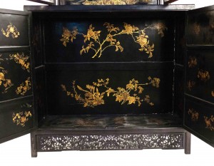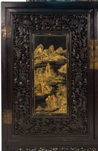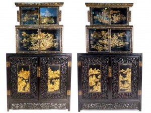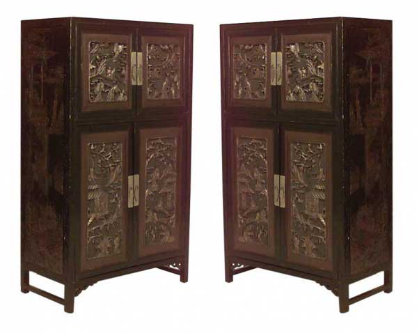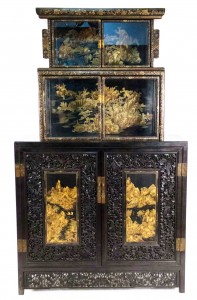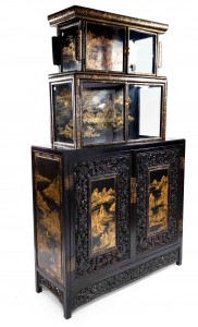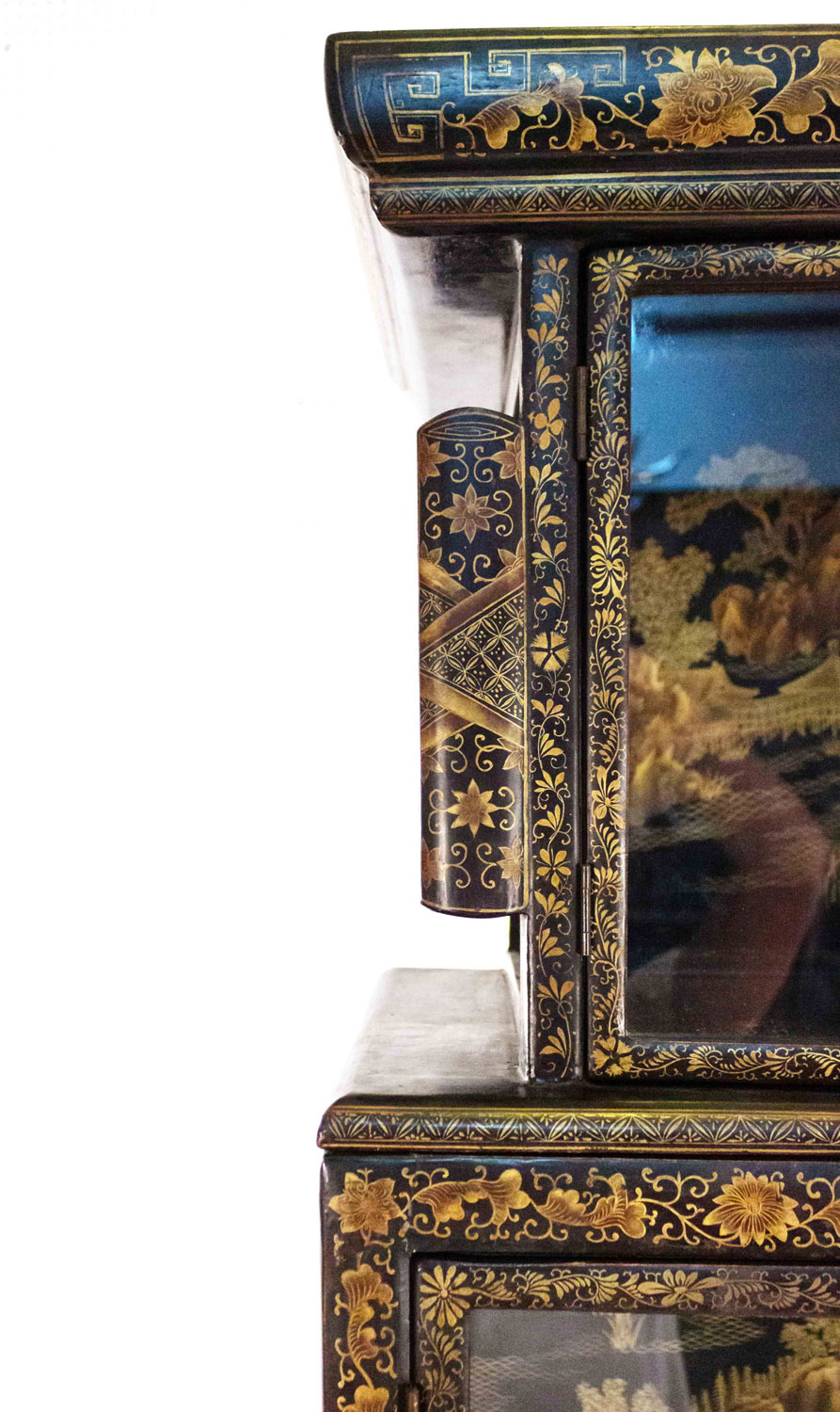 Style: Asian Materials & Techniques: Glass, wood, brass, lacquered, carved Category: Cabinets & Case Goods