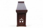 Chinese hardwood altar / console table accented with ornately carved and pierced spandrels and recessed legs and topped with a surface bearing gently sloping sides..