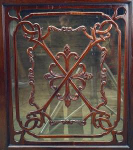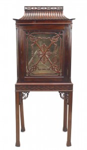 Style: English Materials & Techniques: Glass, mahogany Category: Cabinets & Case Goods Condition: Missing glass in the doors Good; Wear consistent with age and use