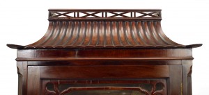 PAIR of English Chinese Chippendale-style (19/20th Century) mahogany curio display cabinets with glass door and pagoda top. (PRICED AS PAIR)