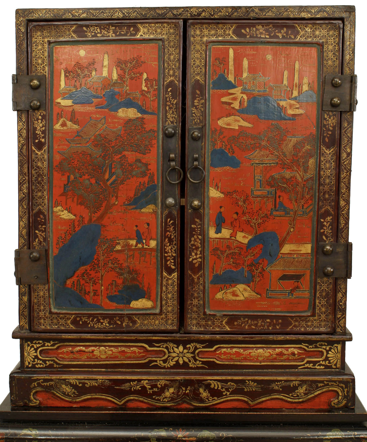 Pair of Chinese Decorated Lacquered Cabinets