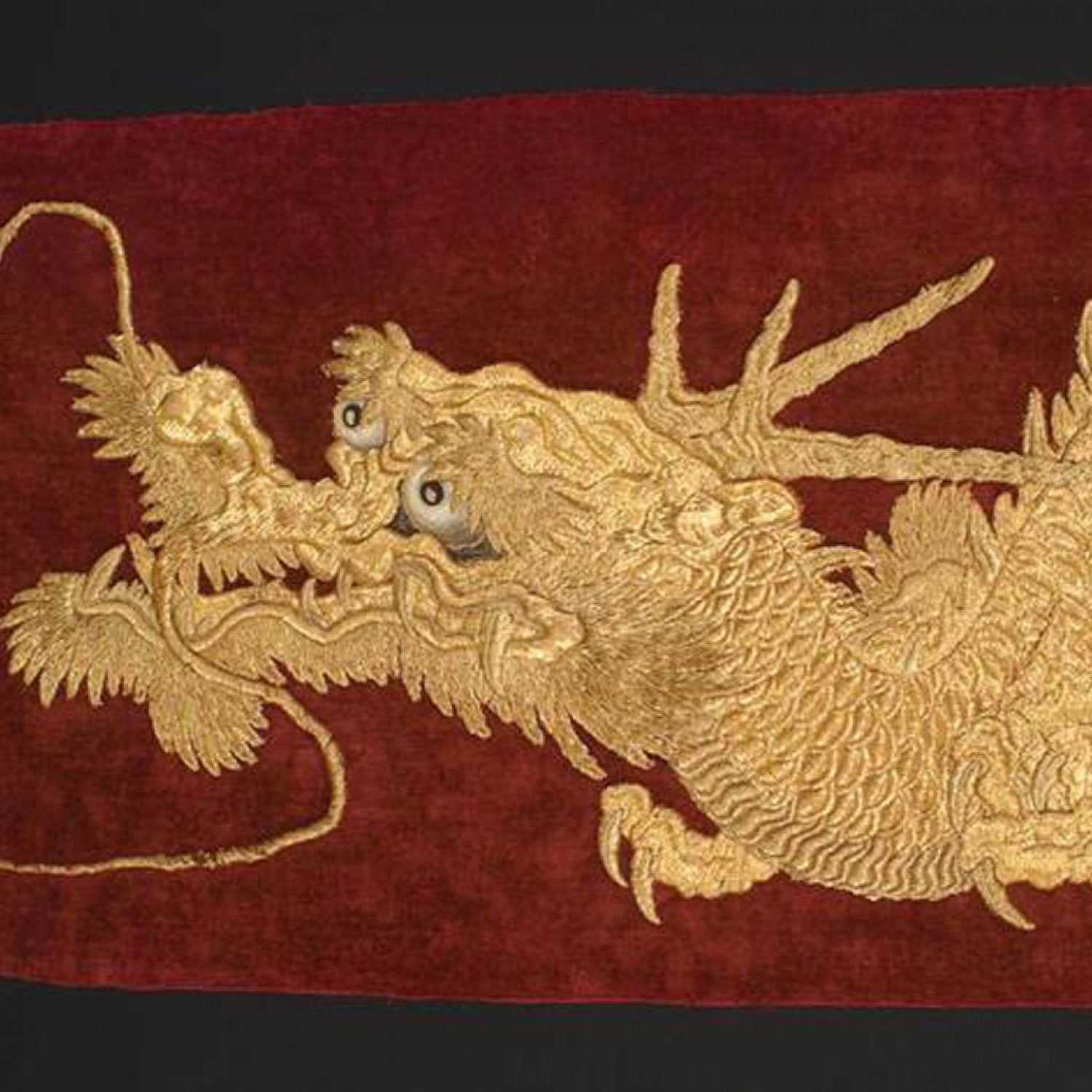 Style: Asian Materials & Techniques: Gold, fabric, embroidered, embroidery Category: Cleared Art, Rugs/Textile