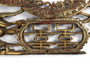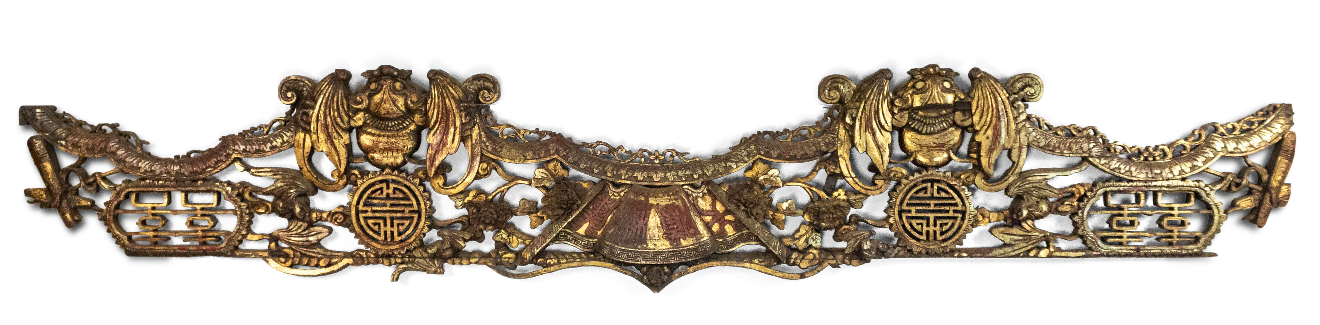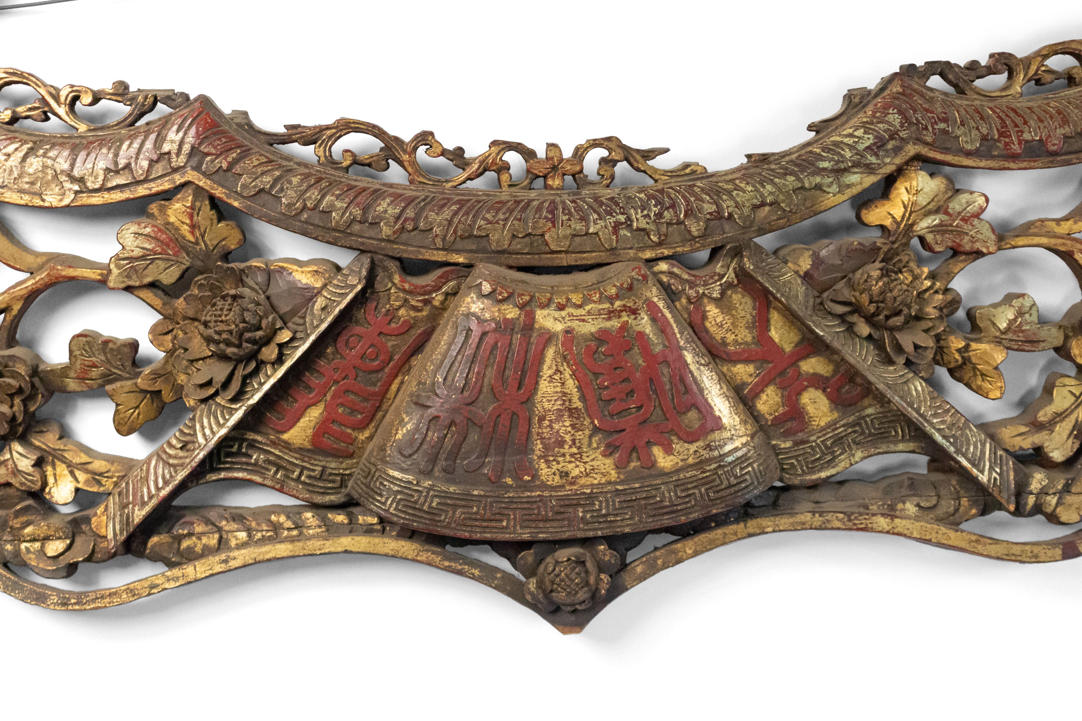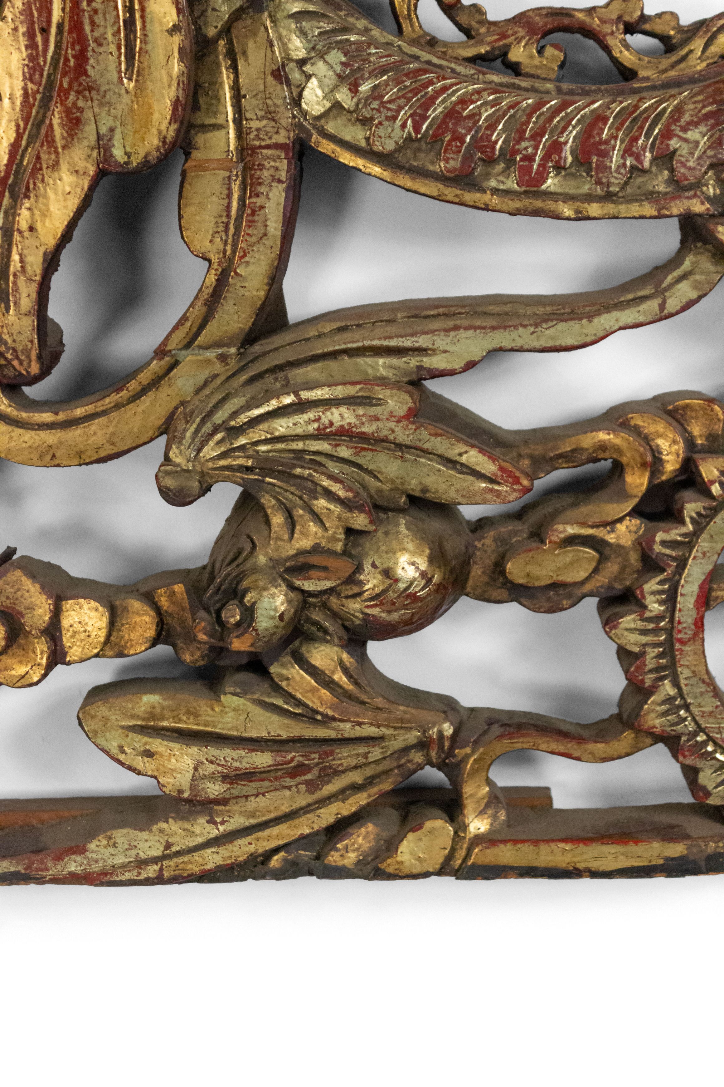 Asian Chinese style (19th Century) red and gold painted filigree carved horizontal wall plaque..