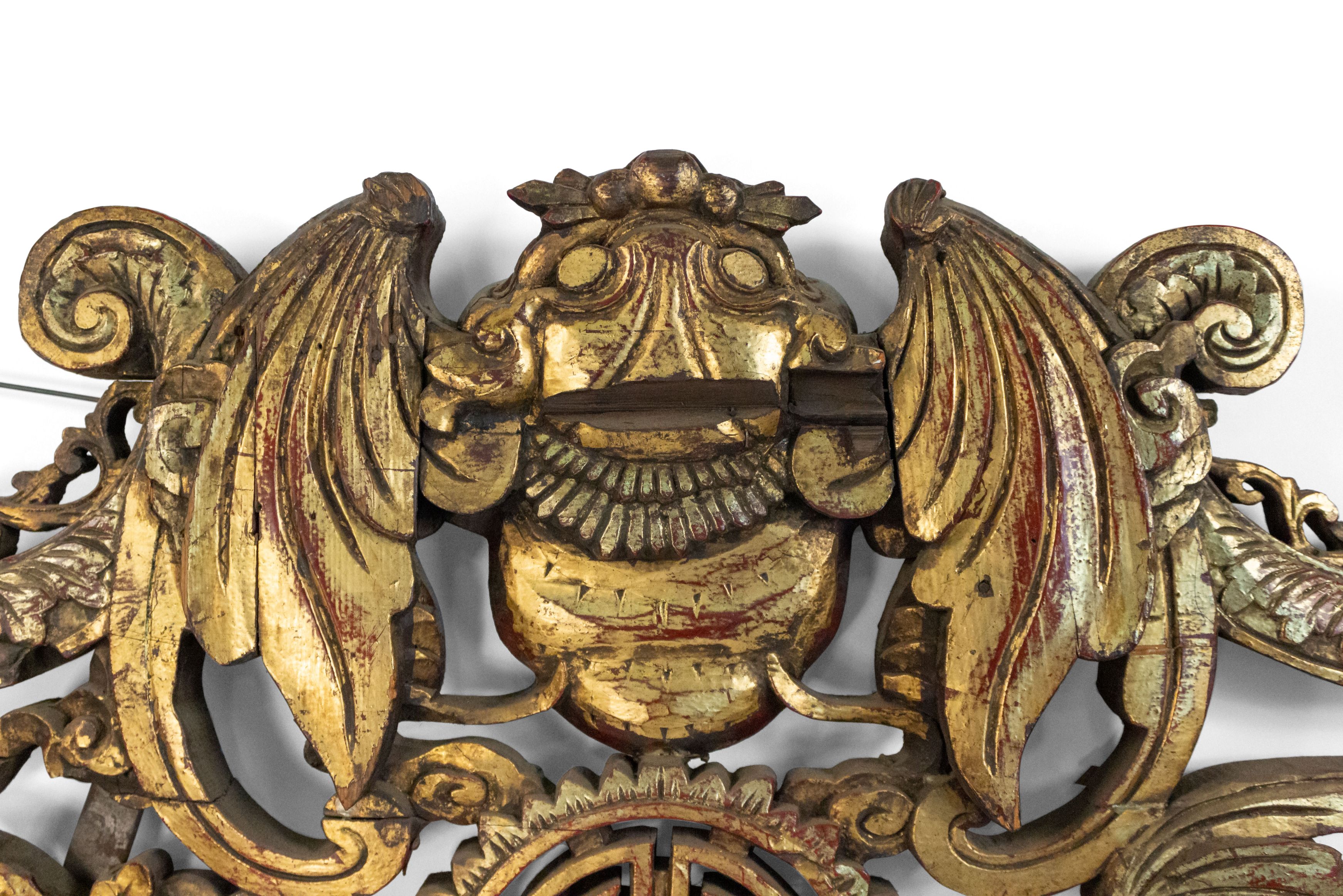 Asian Chinese style (19th Century) red and gold painted filigree carved horizontal wall plaque.