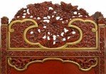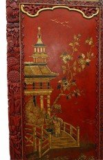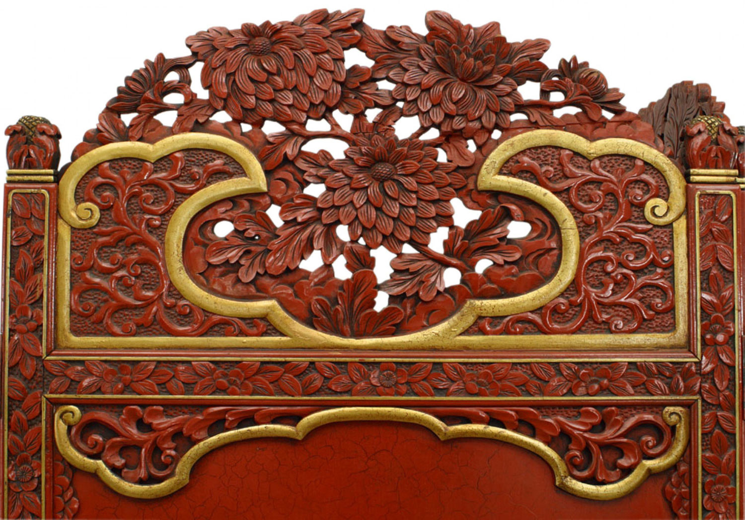 Chinese Red Lacquered 4-Fold Screen with Carved Floral Frame