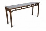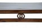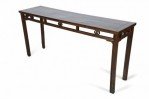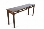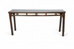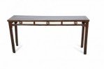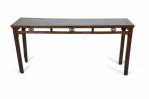 Chinese (19th Century) hardwood narrow rectangular console table with open apron featuring interlocking circular design..