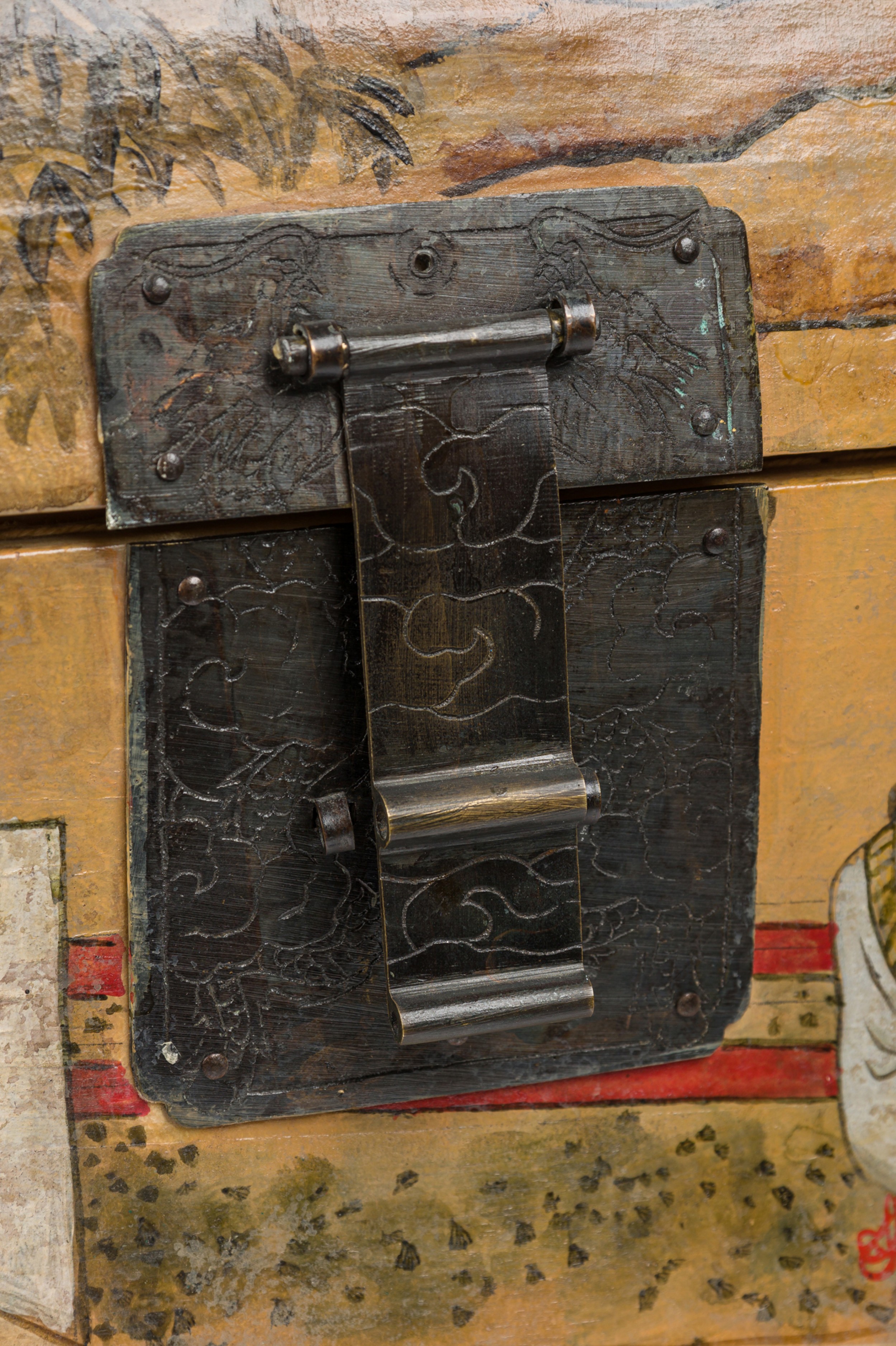Chinese Mid-Century Wooden Lacquered Rectangular Chest with Hand Painted Figural Scenes