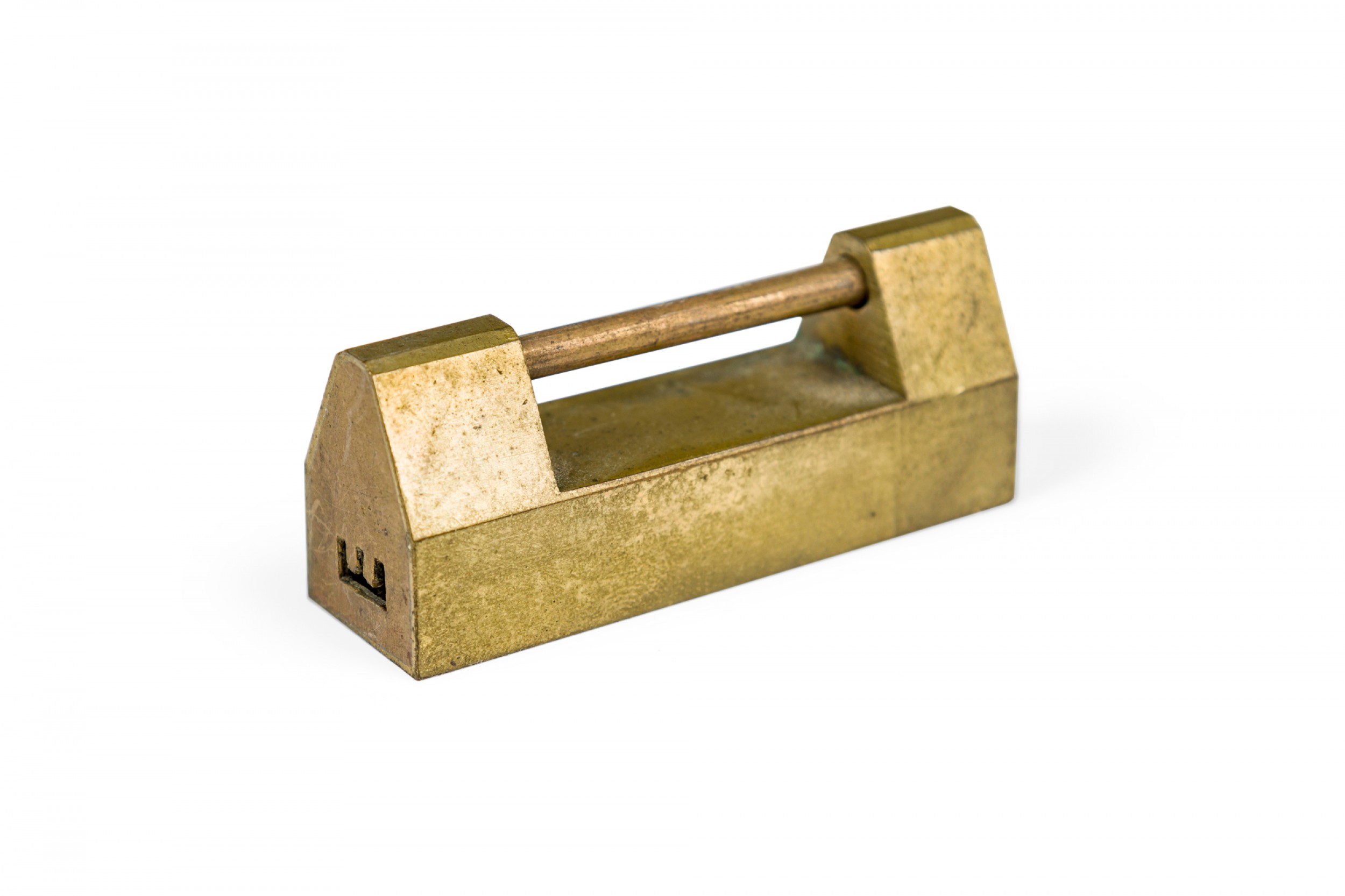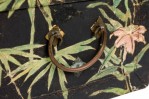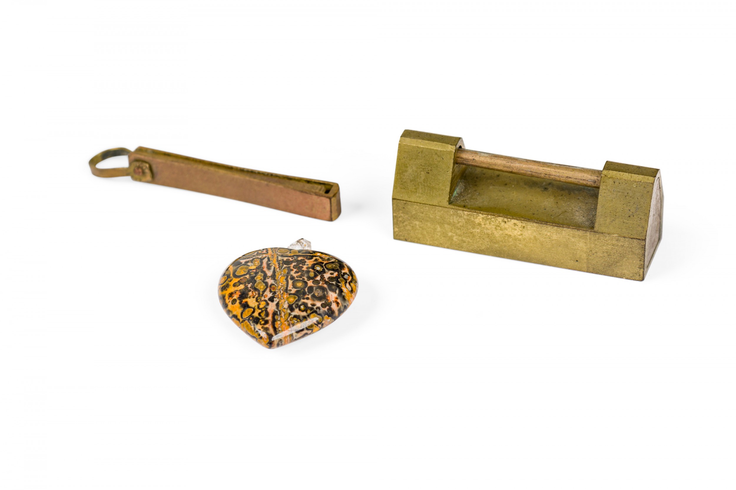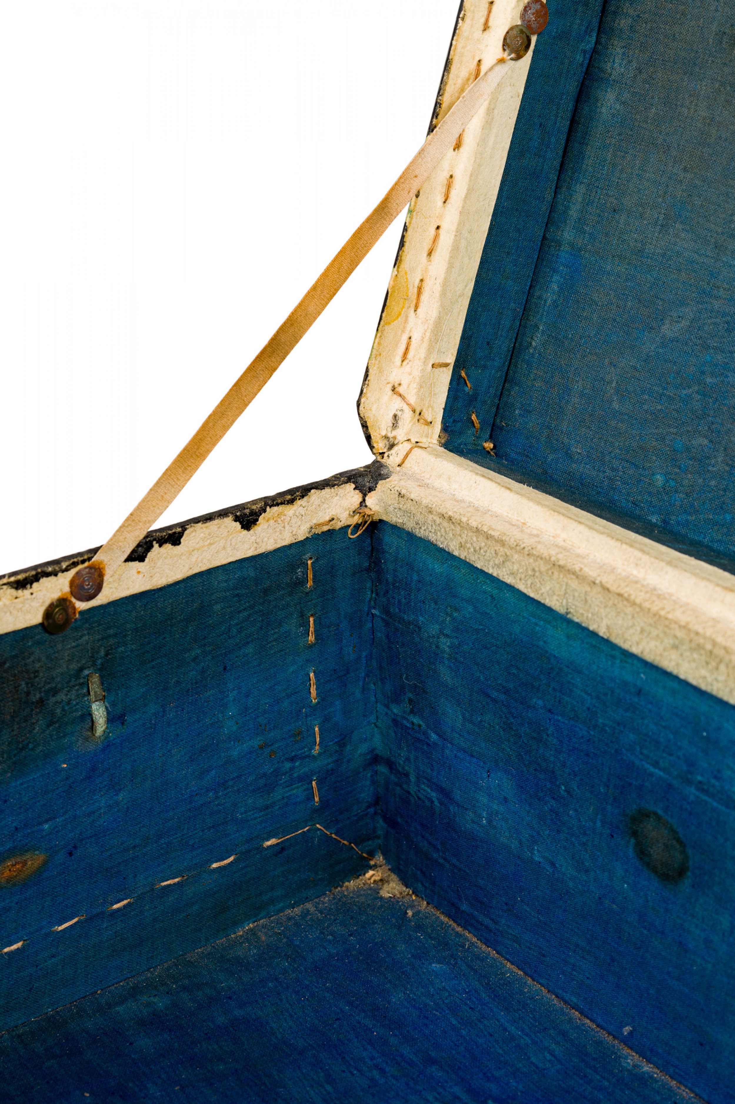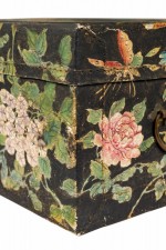 Style: Asian Materials & Techniques: Painted, wood Category: Accessories/Décor/Bric-a-Brac Condition: Lock, key and stone heart charm inside chest. Fair amount of wear to finish, wear on edges & corners, tarnished metal. Good; Minor losses