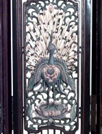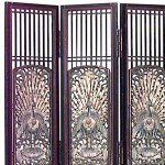 Chinese Polychromed 4-Fold Screen with Carved Peacock Design