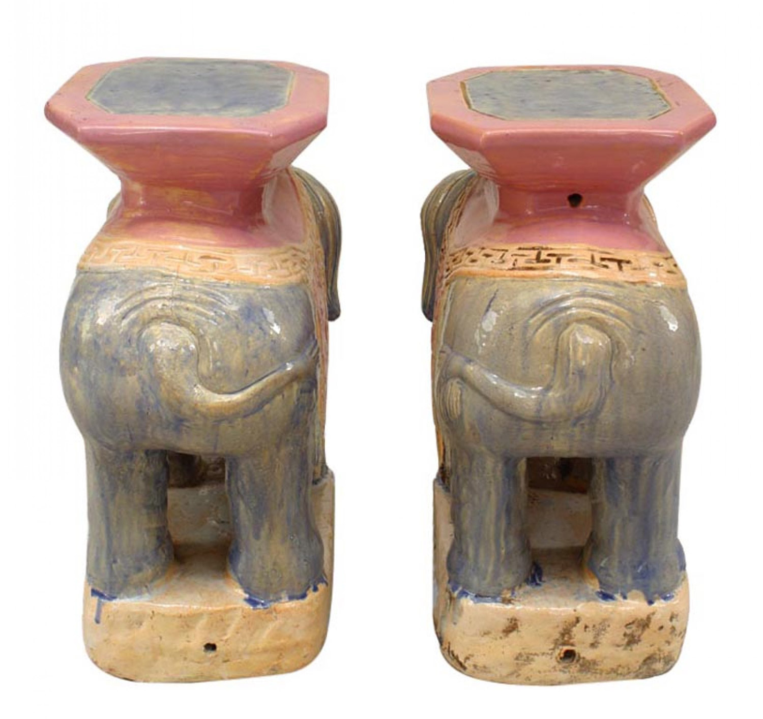 PAIR of Asian Chinese style (20th Cent) purple and pink porcelain elephant garden seats