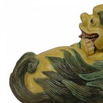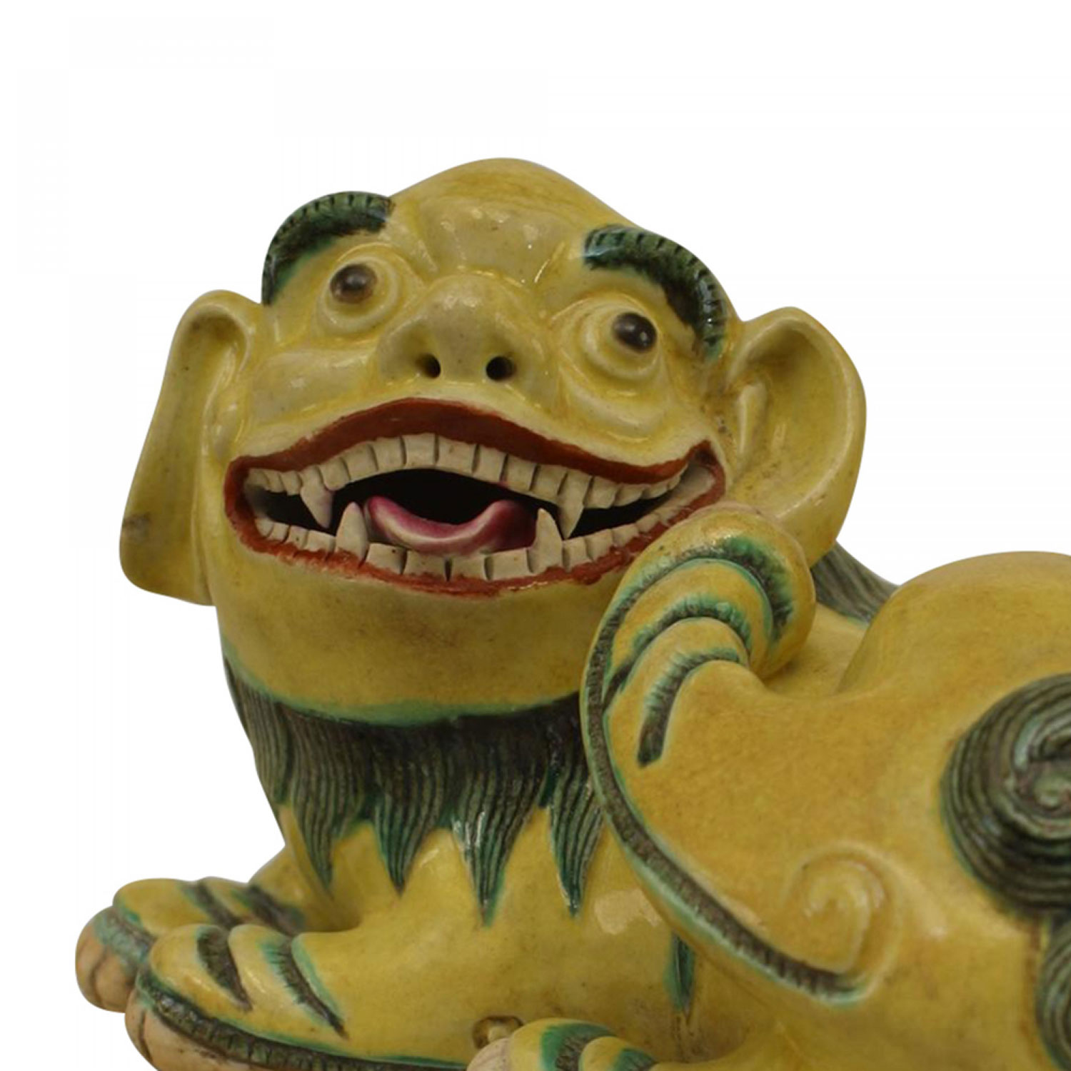 PAIR of Asian Chinese (19/20th Cent) green and yellow small porcelain reclining foo dog figures