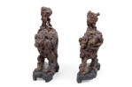 PAIR of Asian Chinese style (19th Cent) root design foo dog figures on shaped teak bases.