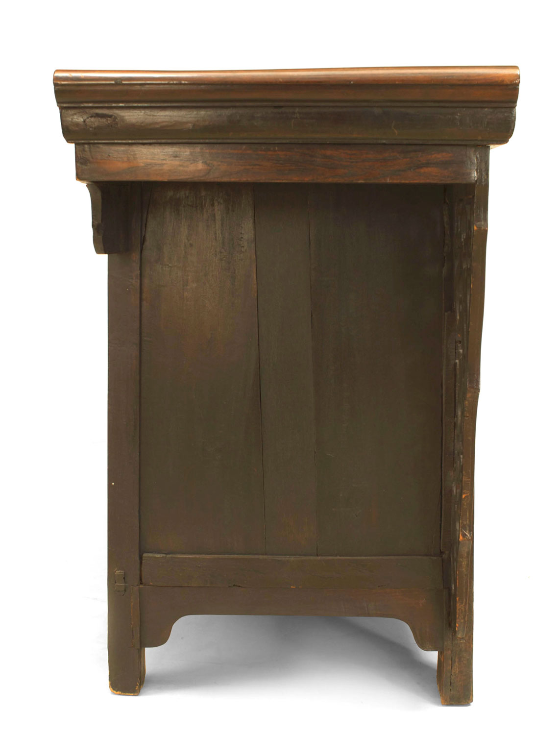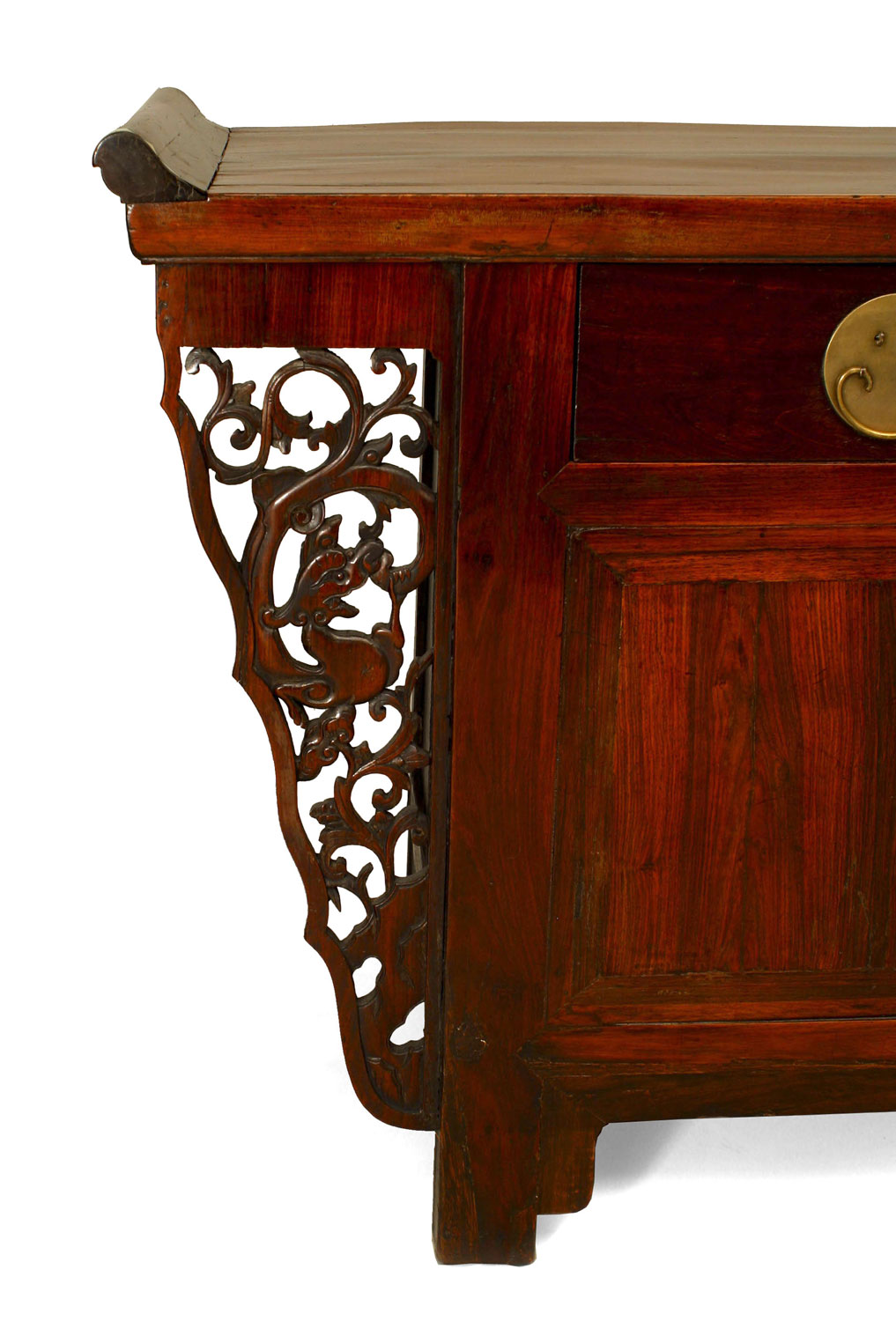 Asian Chinese (18th Century) rosewood (Hongmu) coffer sideboard with 3 drawers over a pair of doors with brass hardware and filigree carved side panels.