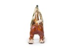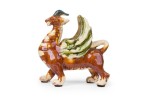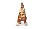 Chinese Sancai glazed ceramic figurine depicting Yinglong, the dragon deity standing on all fours, a sphere clenched in its mouth..