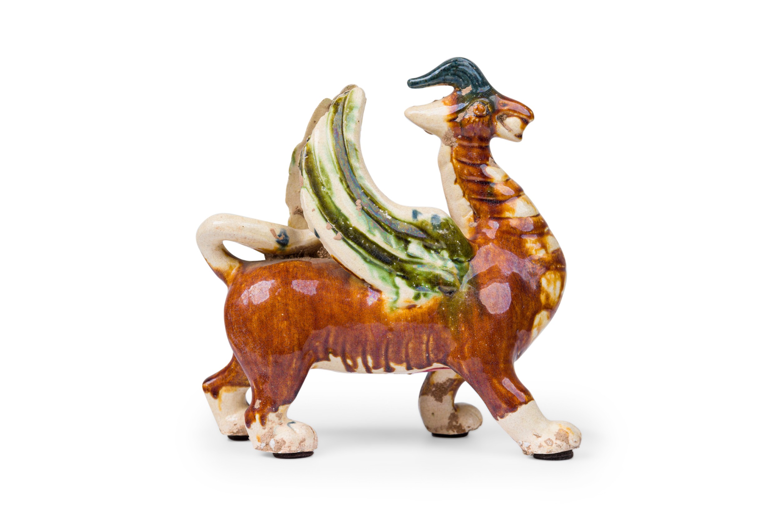 Chinese Sancai Glazed Ceramic Yinglong Winged Dragon Figurine