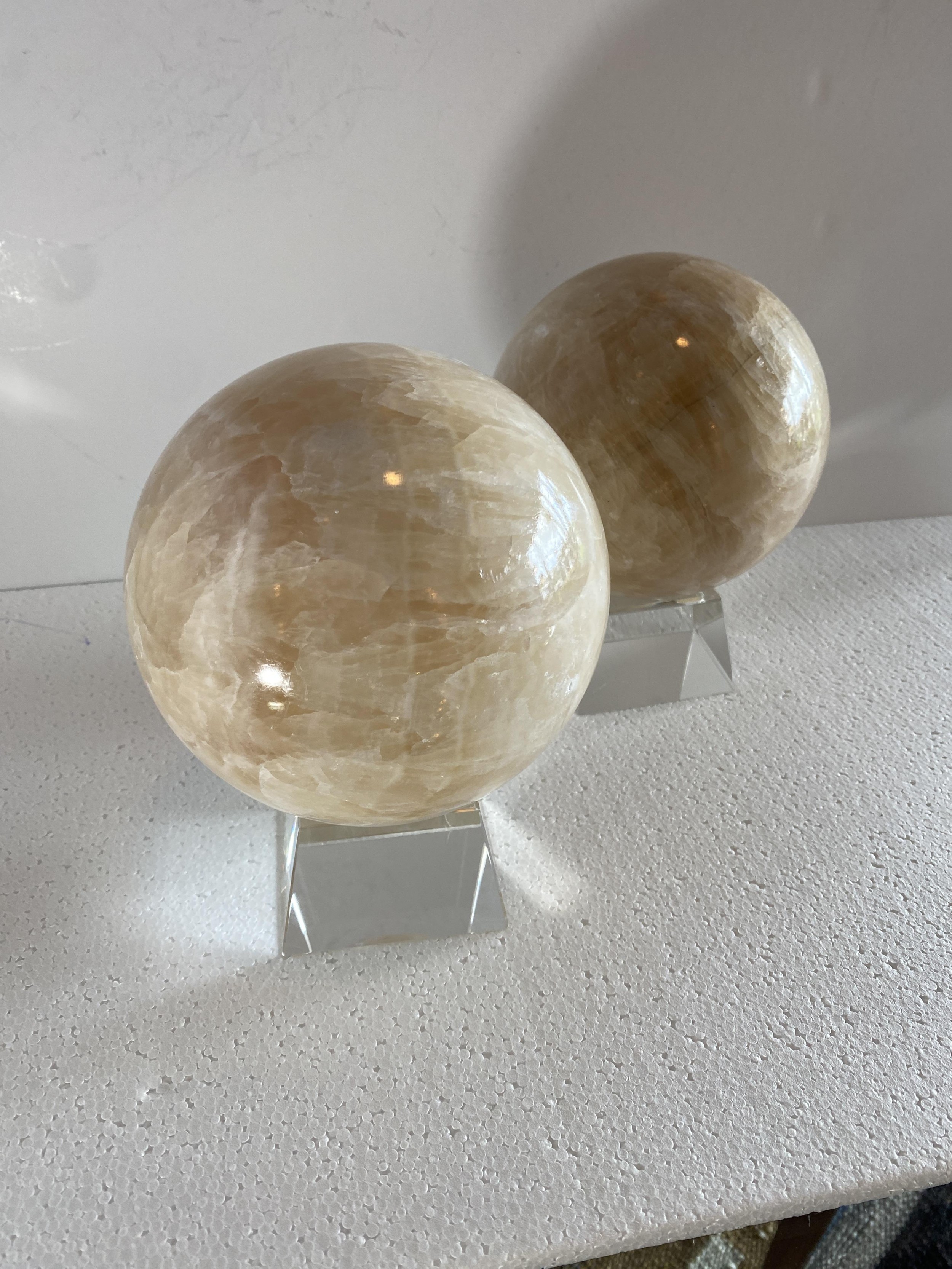 2 Large quartz spheres (modern platform base) (PRICED EACH).