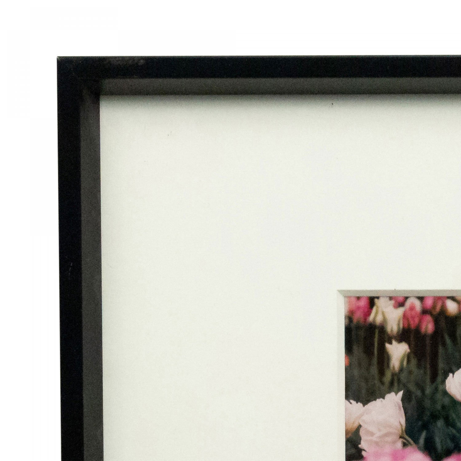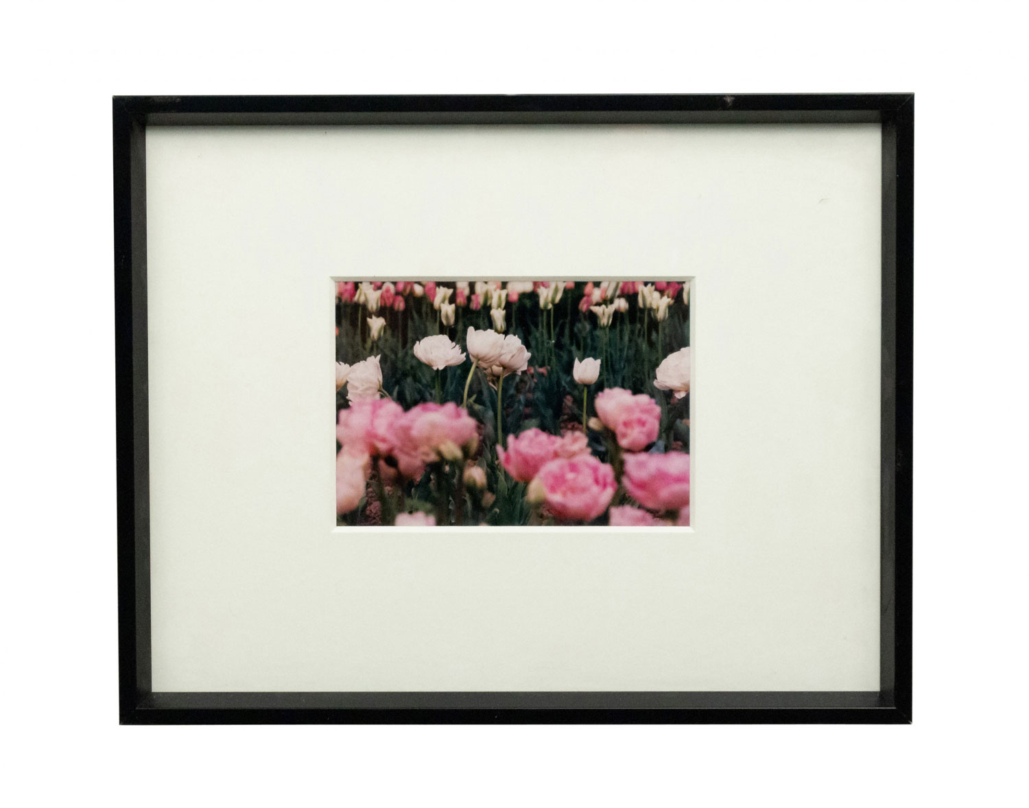Color photograph in a black frame of pink flowers by Shelley Harrison..