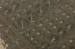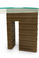 Contemporary Abstract Geometric Three Metal Pedestal Seeded Glass Top Dining / Conference Table