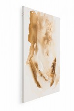 Contemporary American abstract acrylic painting in a light brown wash on rectangular stretched canvas. (BARBARA KISKOVSKI).