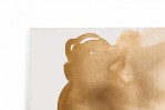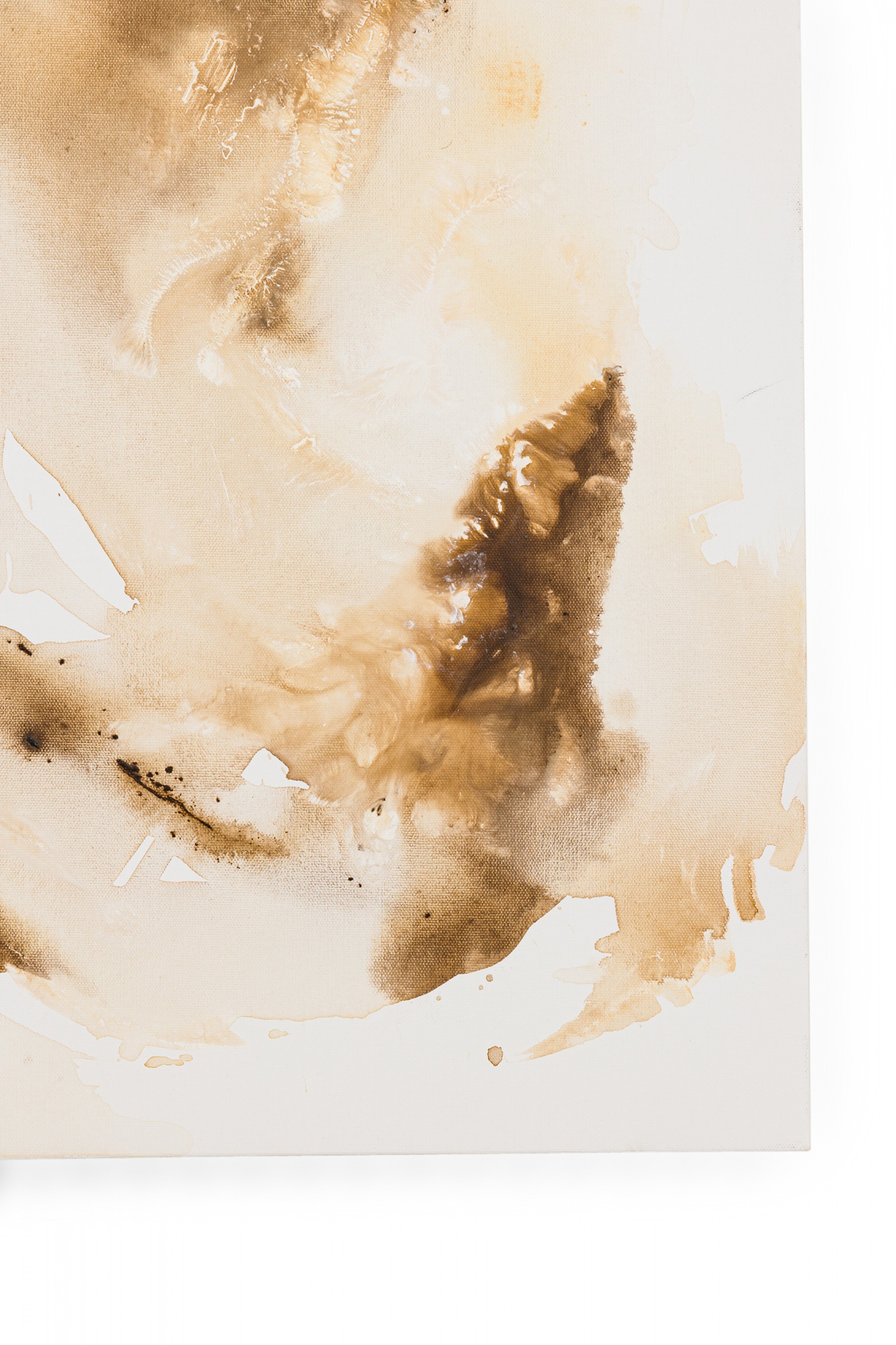 Contemporary American abstract acrylic painting in a light brown wash on rectangular stretched canvas. (BARBARA KISKOVSKI)
