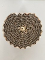 Style: Contemporary/Post-War Design Materials & Techniques: Coral / shell, velvet, wood Category: Accessories/Décor/Bric-a-Brac Good; Wear consistent with age and use