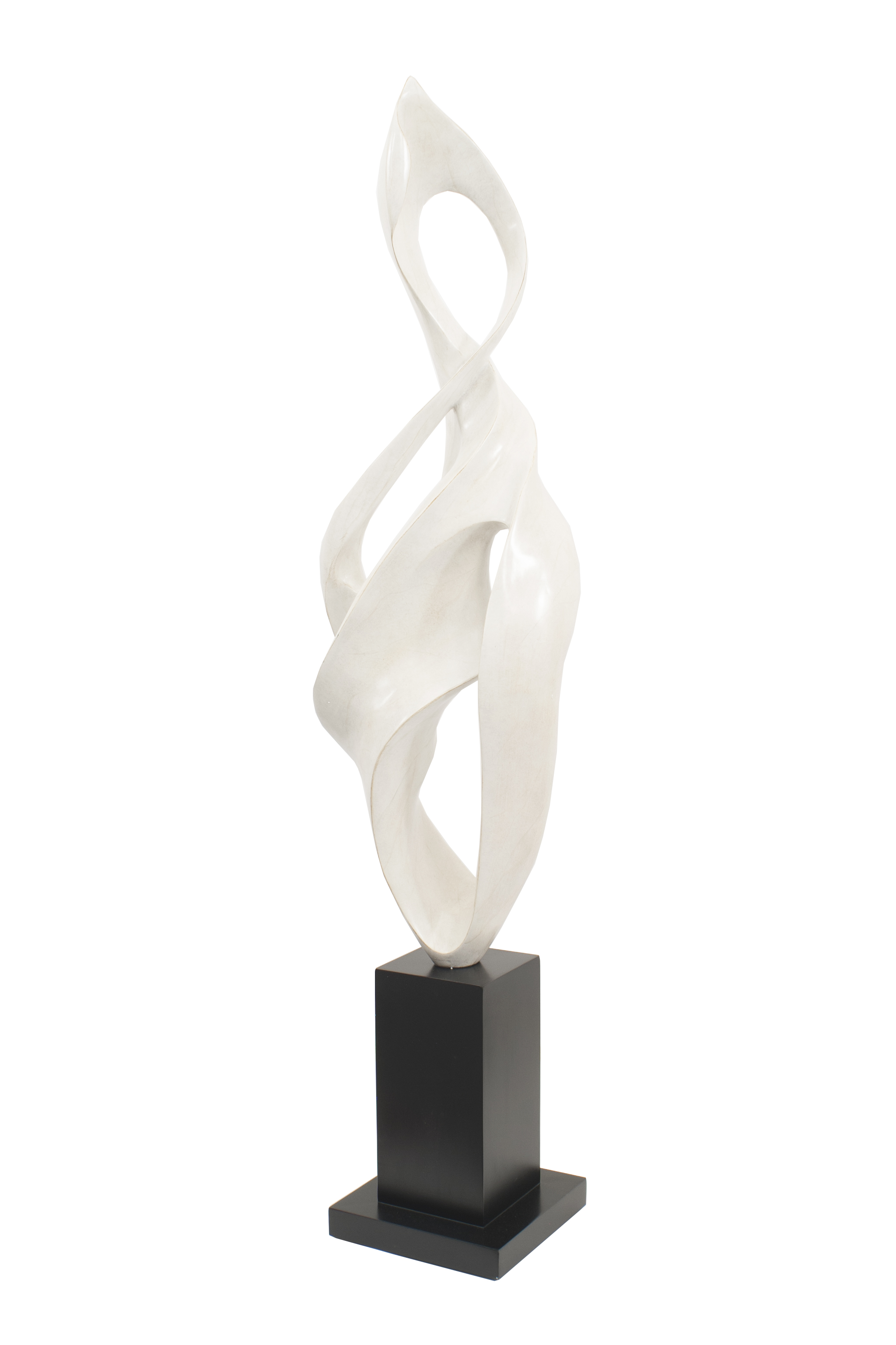 Contemporary beige resin abstract floor sculpture on a black base.