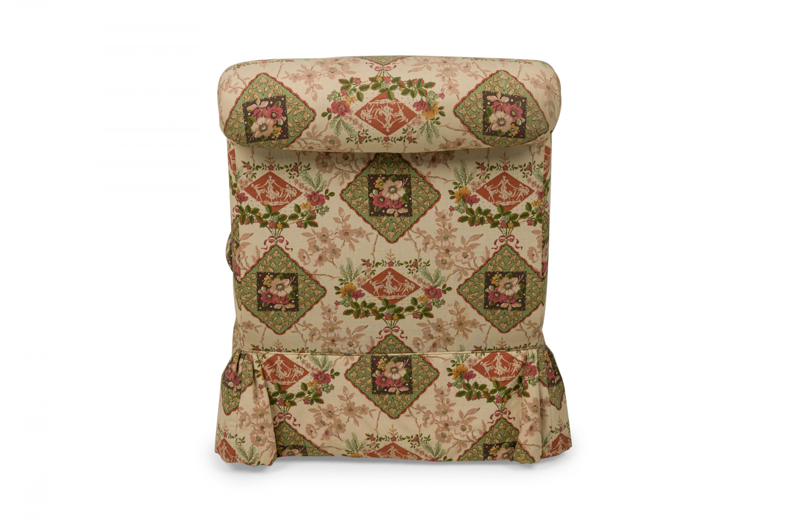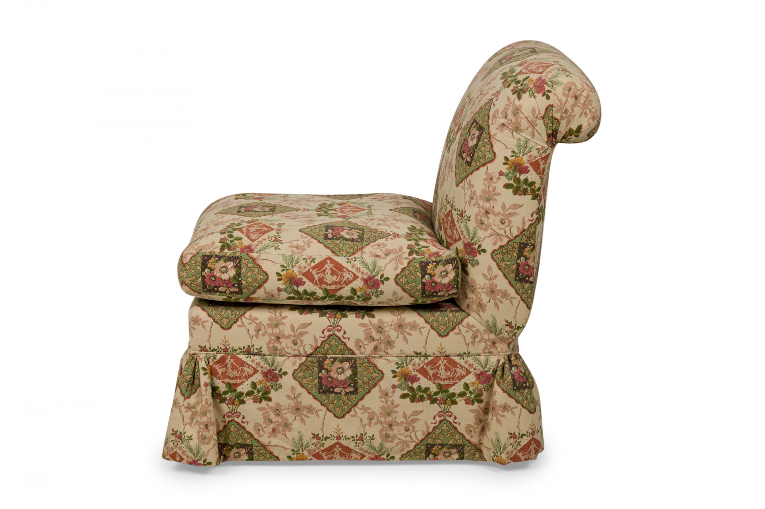 Contemporary Beige Floral and Genre Scene Patterned Upholstered Slipper Chair