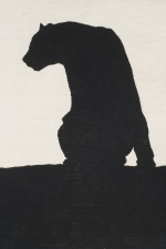 Contemporary wool black and white hand woven tapestry of a seated leopard ("THE BIG FIVE: LEOPARD", 2011, designed by GEOFFREY BRADFIELD) (Related item: BRA019, BRA020, BRA021, BRA022. BRA024).