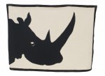 Contemporary wool black and white hand woven tapestry of a rhino Contemporary wool black and white hand woven tapestry of an elephant ("THE BIG FIVE: RHINO", 2011, designed by GEOFFREY BRADFIELD) (Related item: BRA018, BRA019, BRA021, BRA022. BRA024)