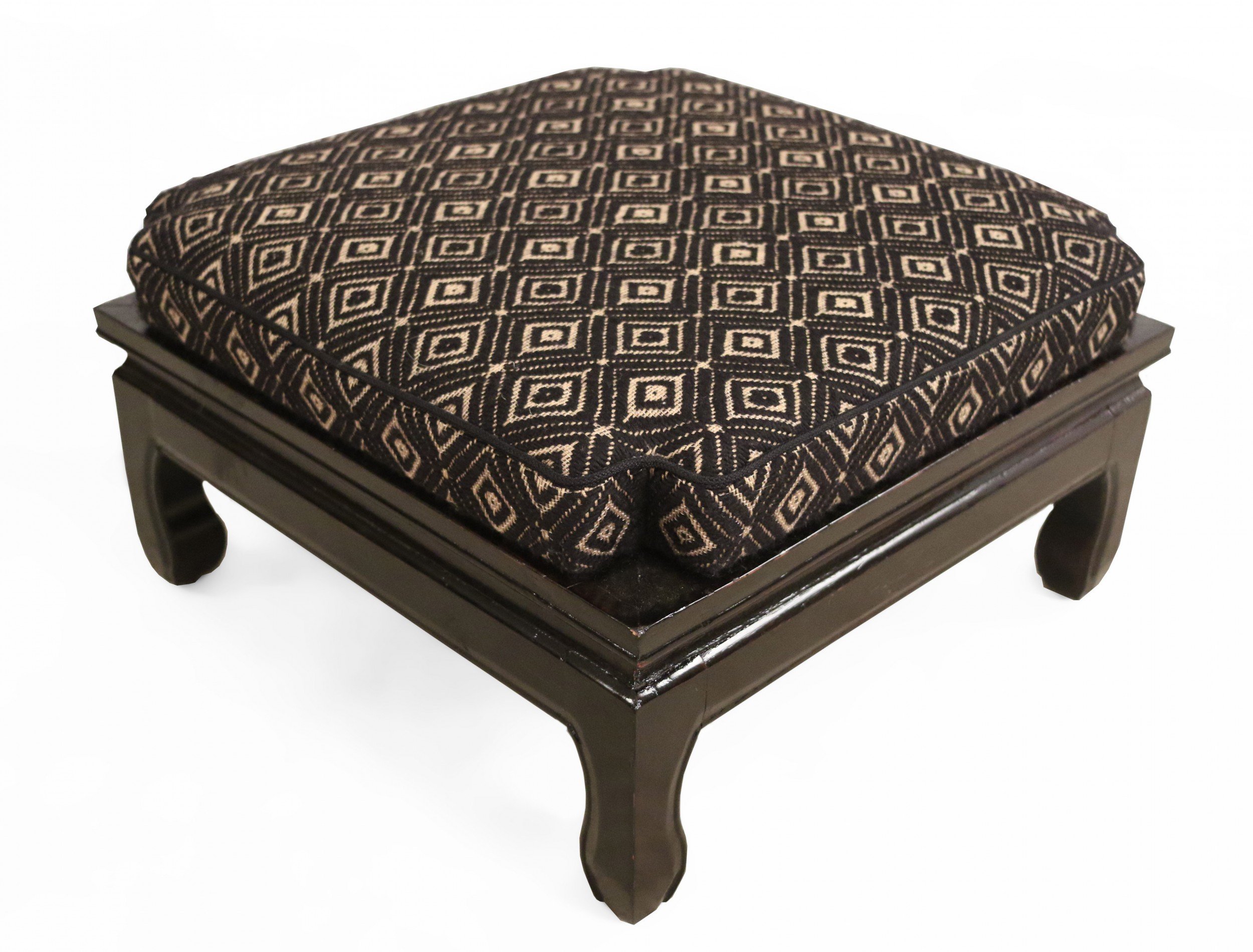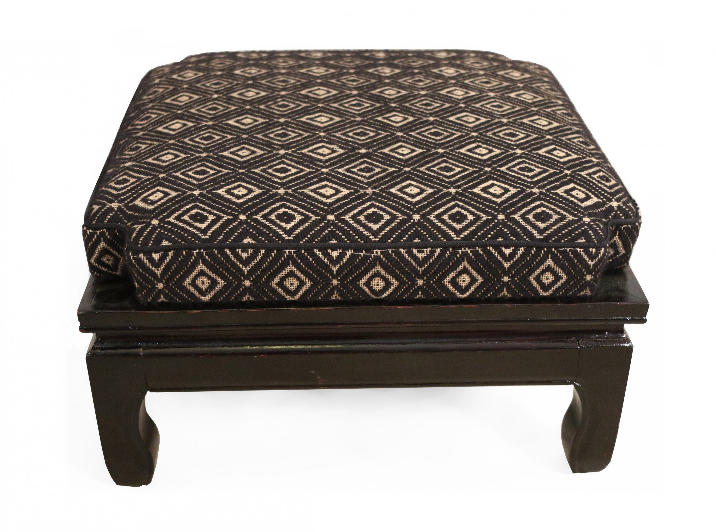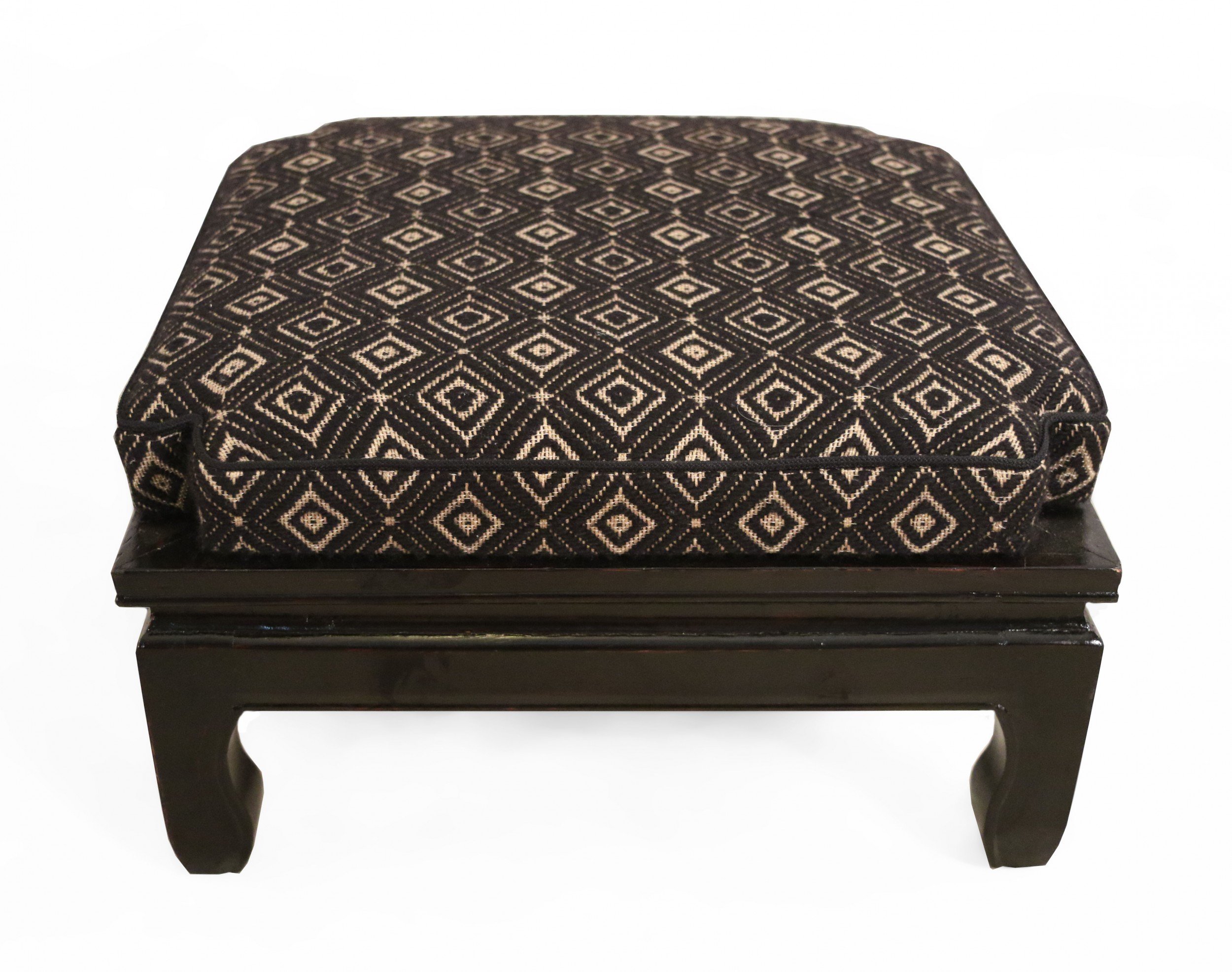 Contemporary Black Lacquer and Upholstery Square Footstools