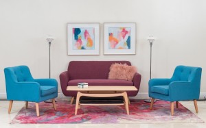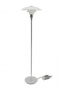 Contemporary floor lamp with white frosted glass shades and chrome post and base