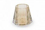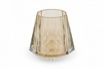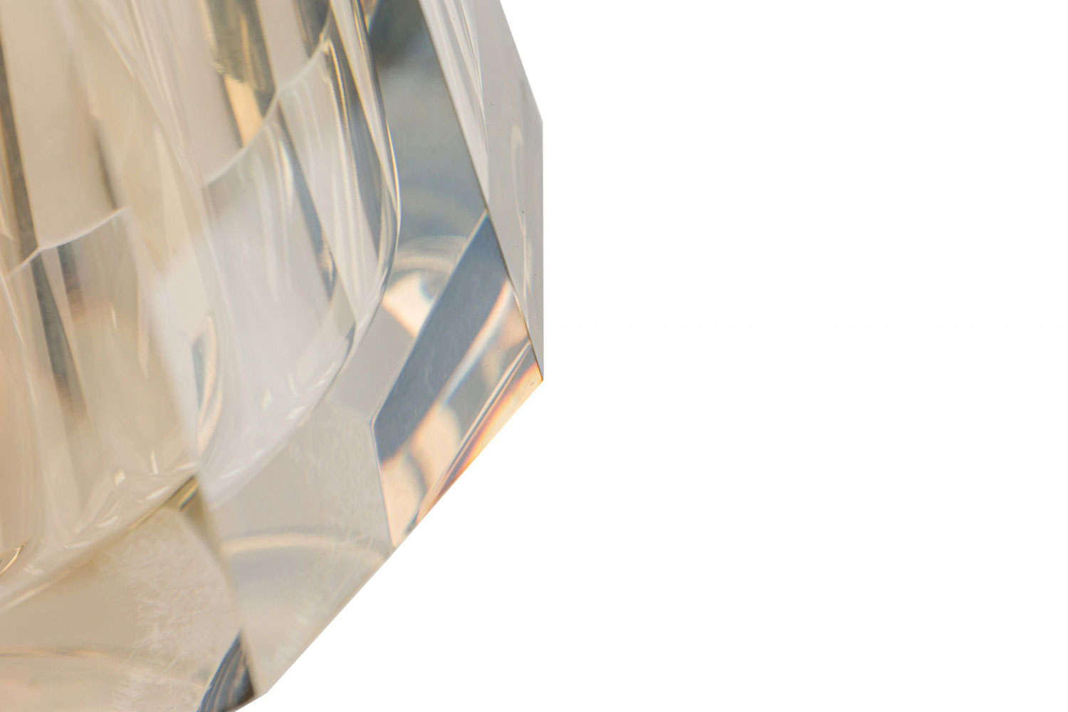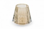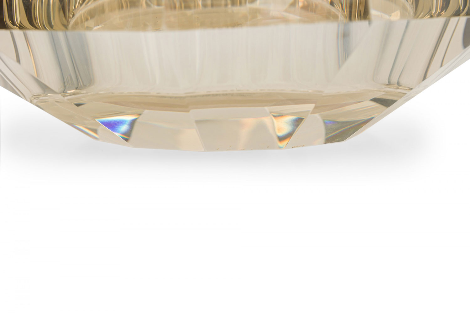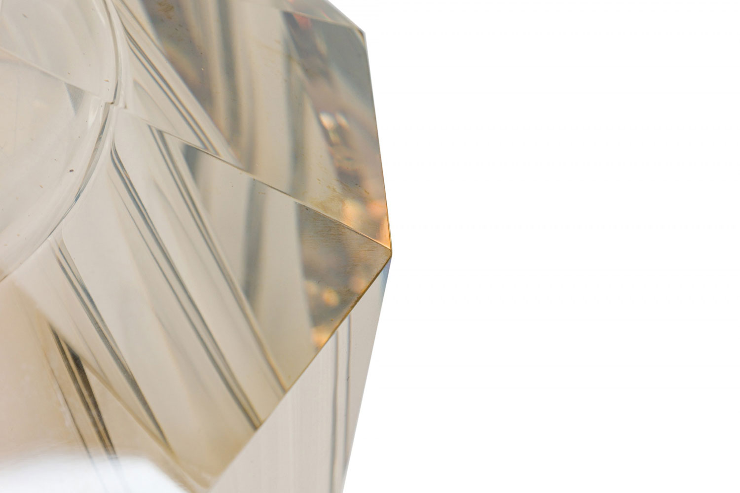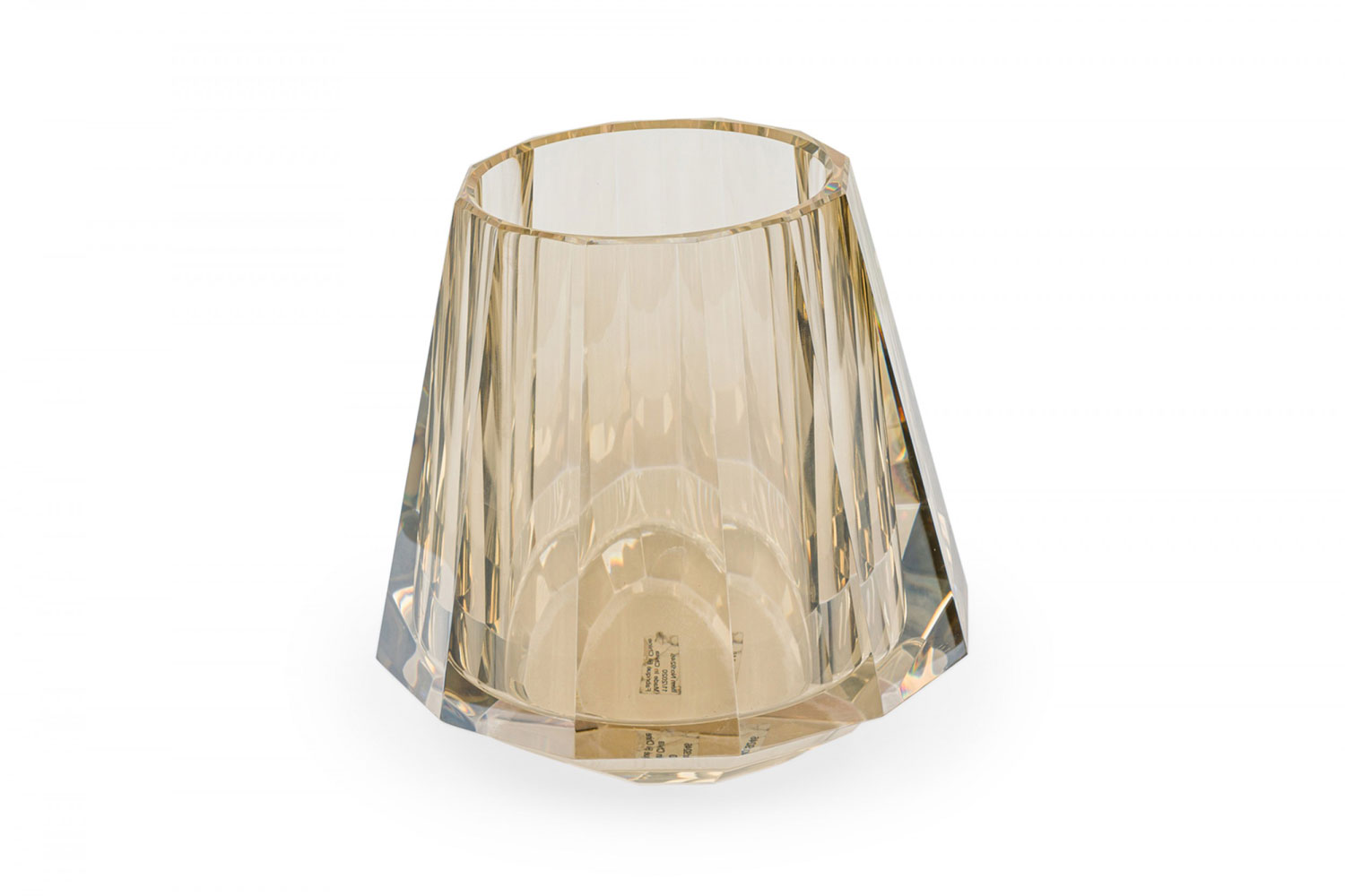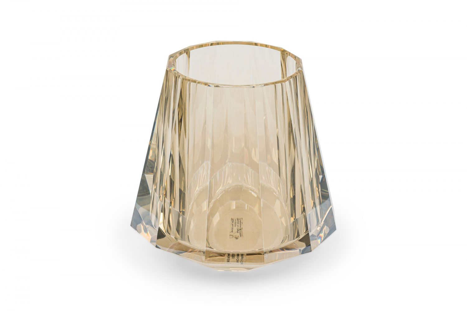 Contemporary Art Deco style light amber glass vase with a faceted heavy base that tapers upwards to a wide circular opening..
