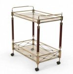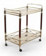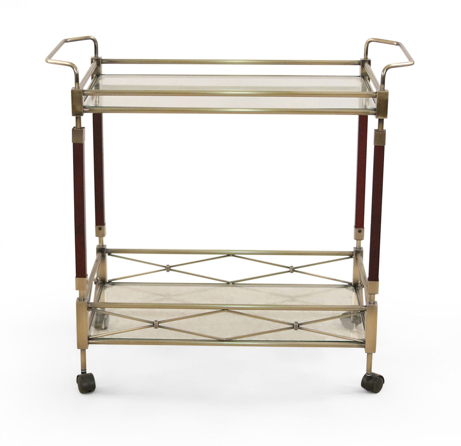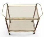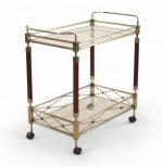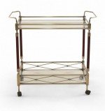 Contemporary Gilt Metal, Glass, and Wood Bar/Tea Cart