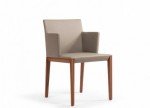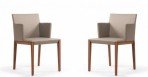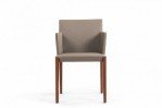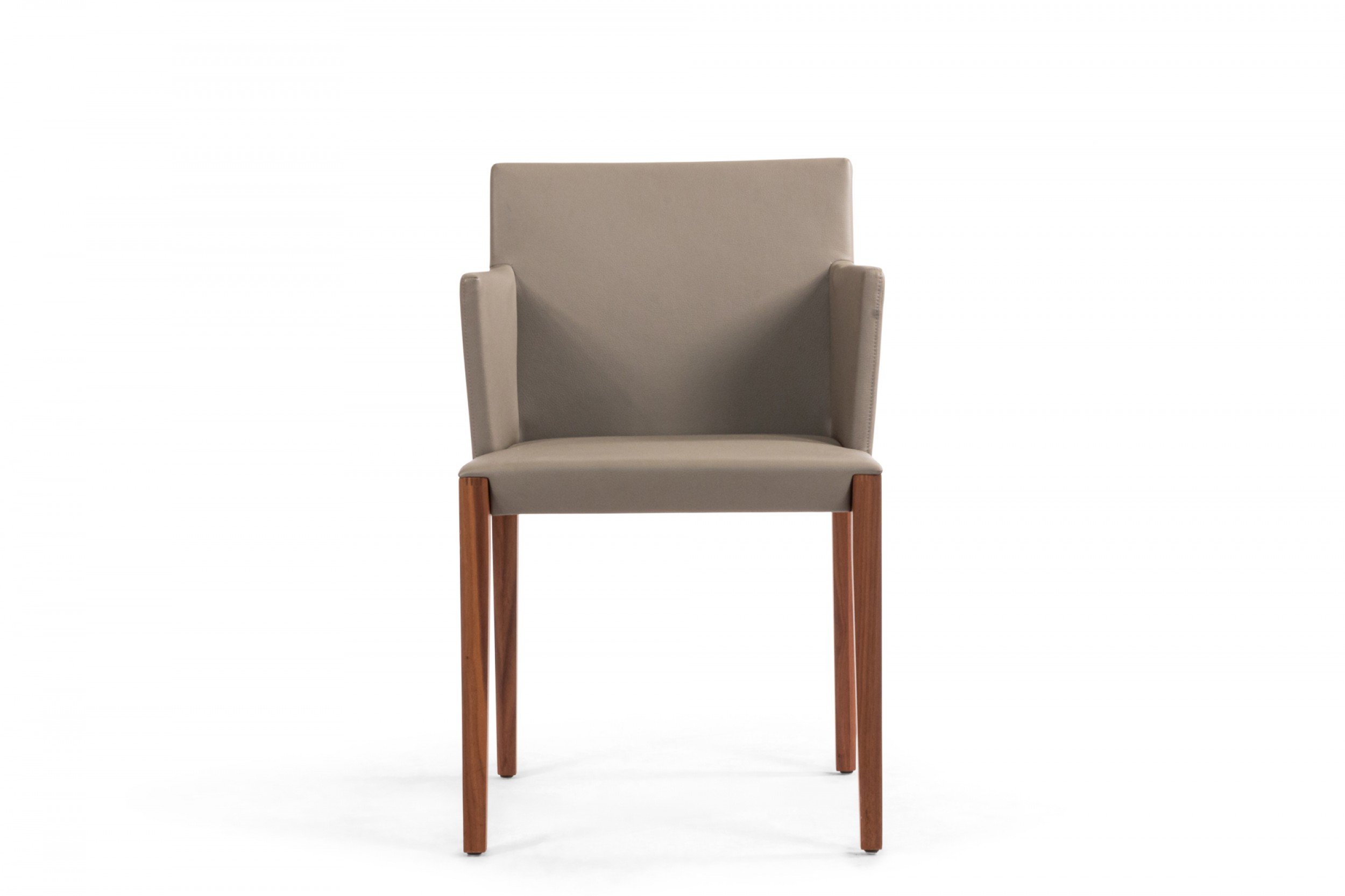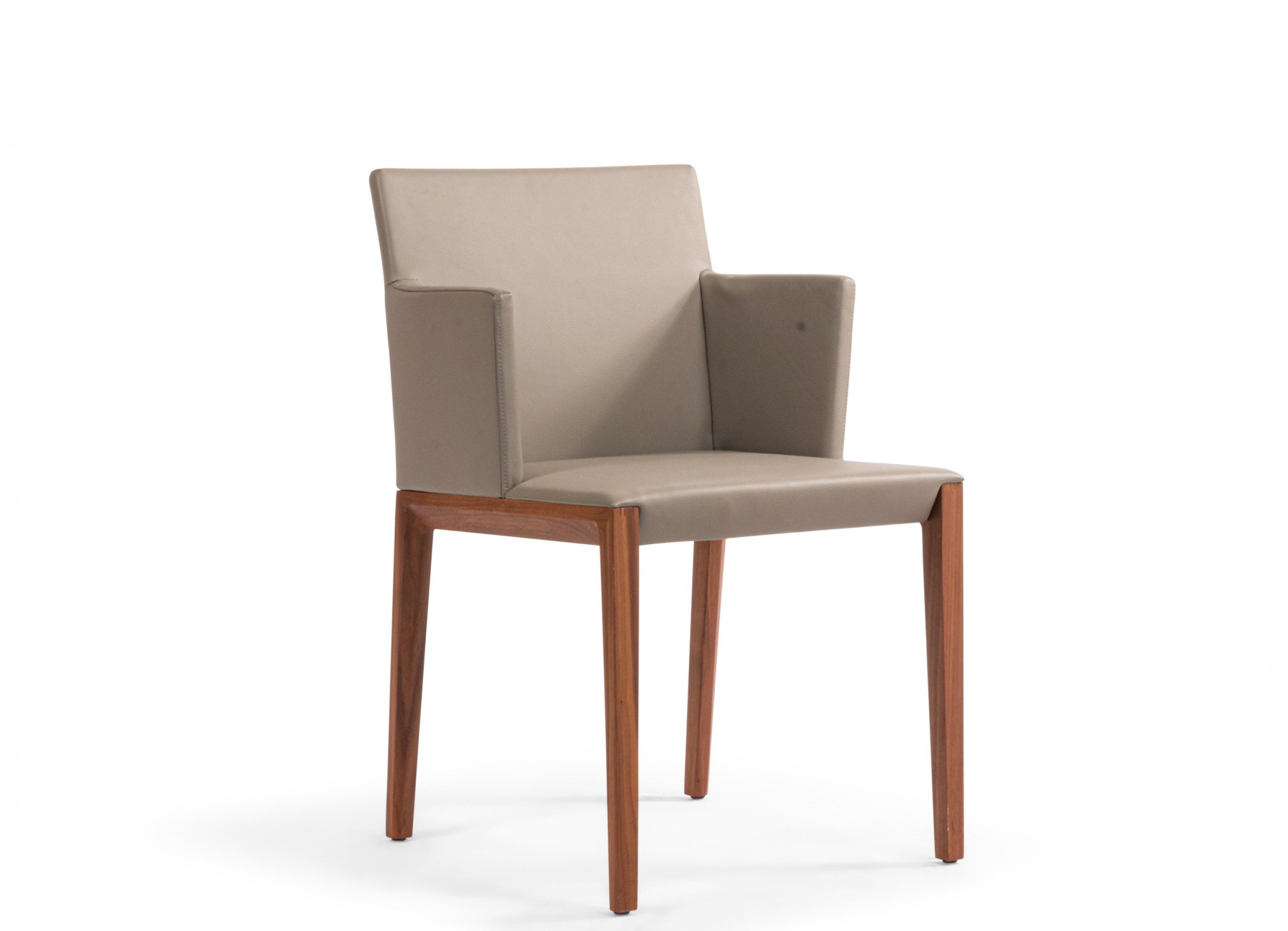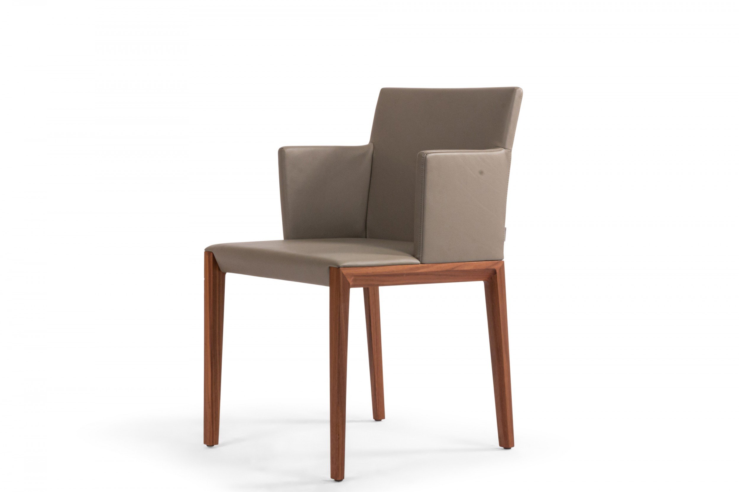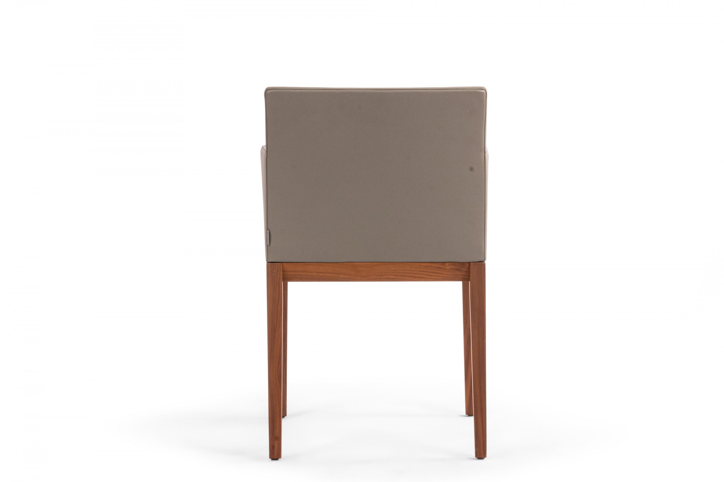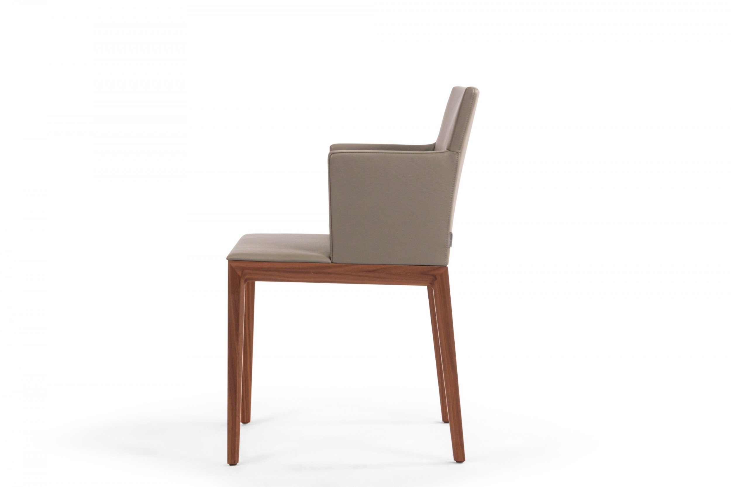 4 Contemporary "Ando" stone gray leather square back armchairs with straight walnut legs and short arms. (PRICED EACH)