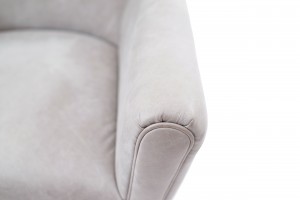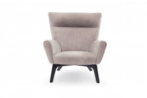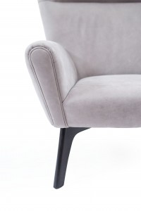 4 Contemporary oversize easy chairs with gray leather upholstery and black tapered legs (PRICED EACH)