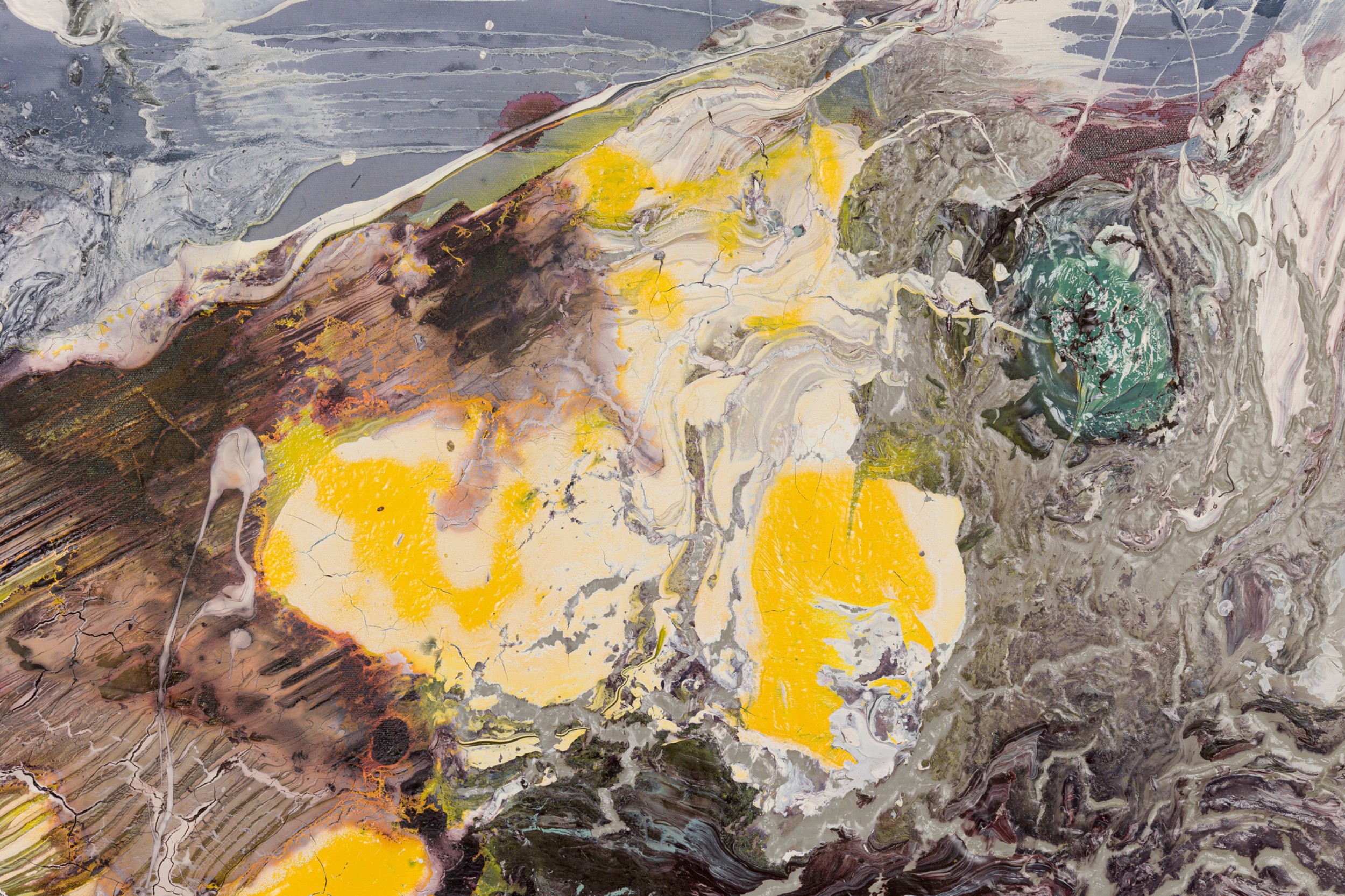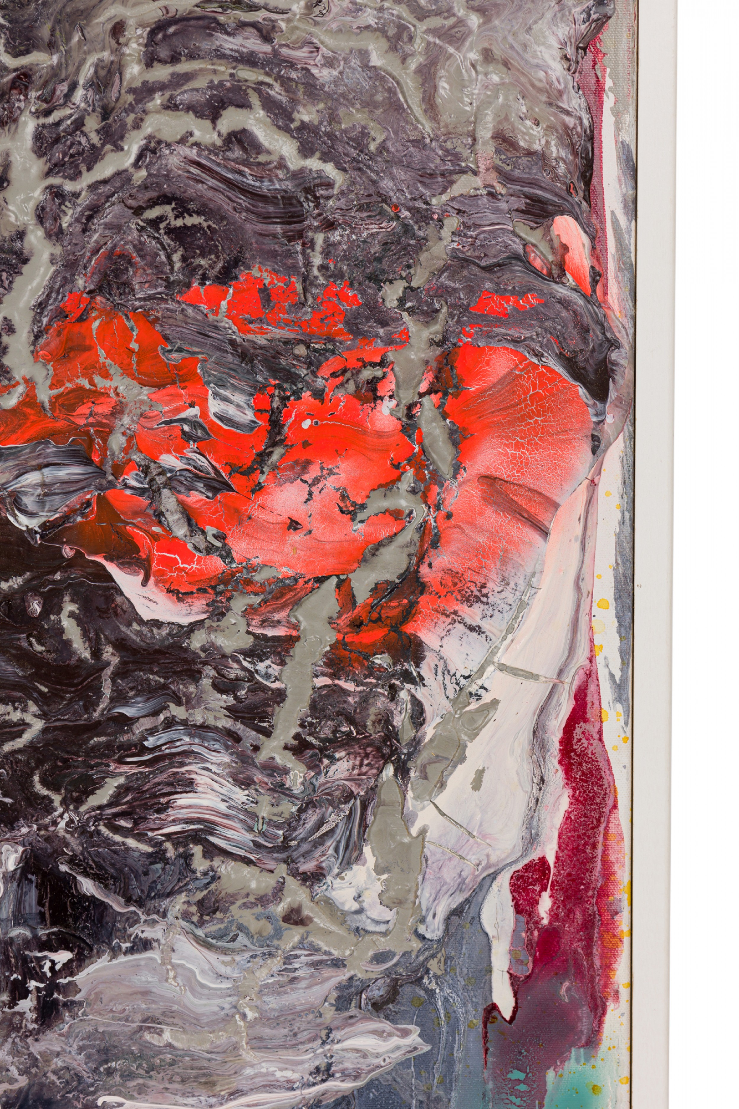 Contemporary Gray, Red, and Yellow Abstract Oil Painting on Stretched Canvas
