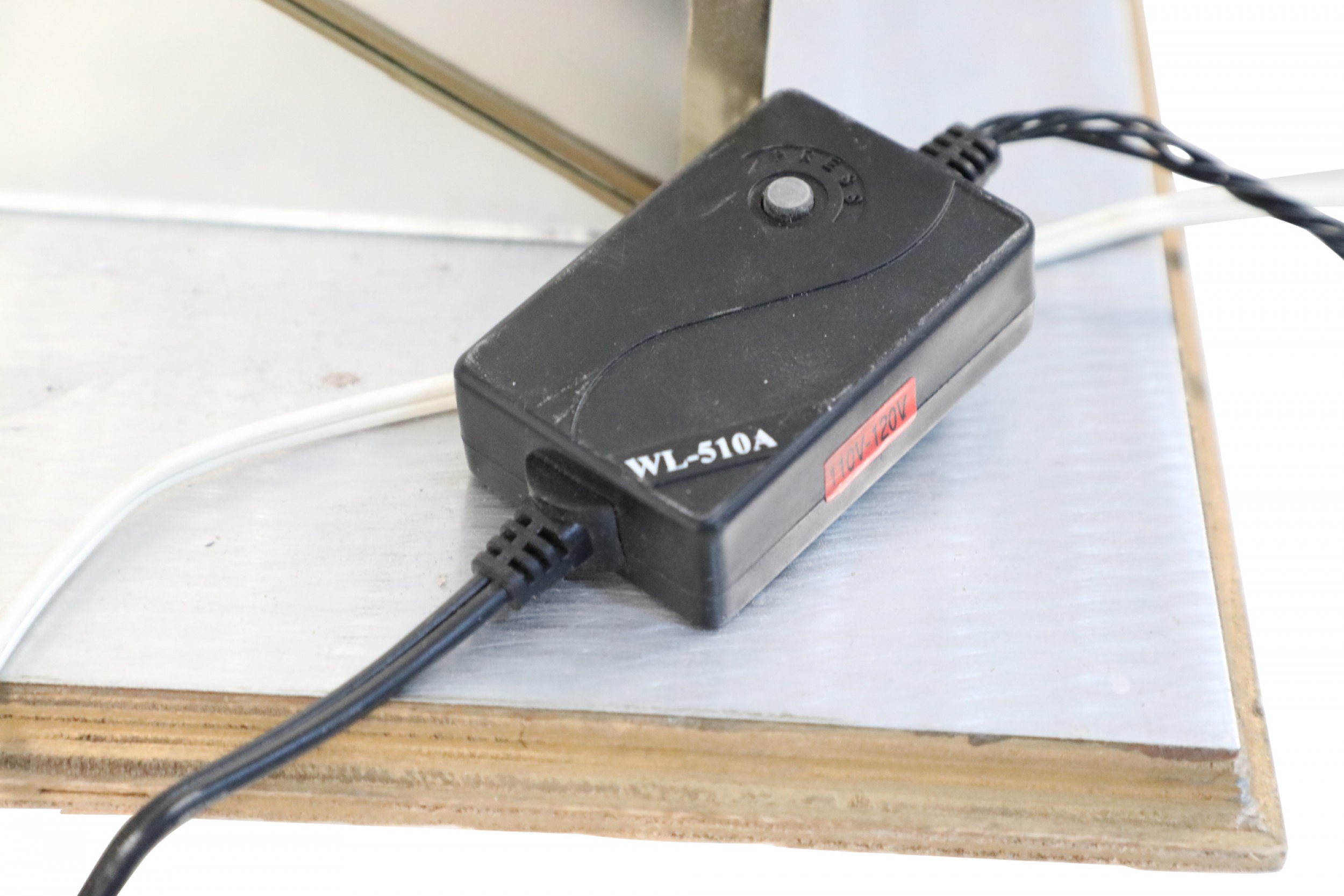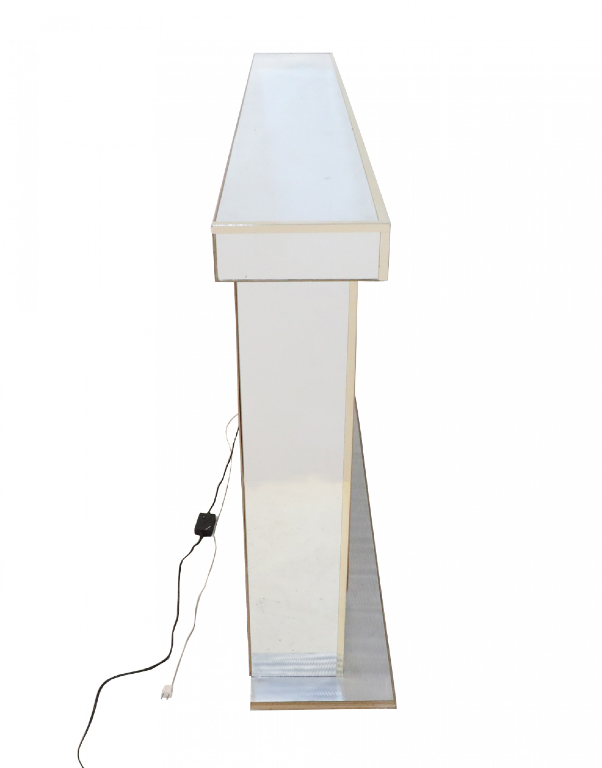 Style: Contemporary/Post-War Design Materials & Techniques: Birch, metal, mirror, mirrored, wood Category: Accessories/Décor/Bric-a-Brac, Architectural/Columns Condition: Lights have a control attached to the electrical cord with 7 different blinking settings.