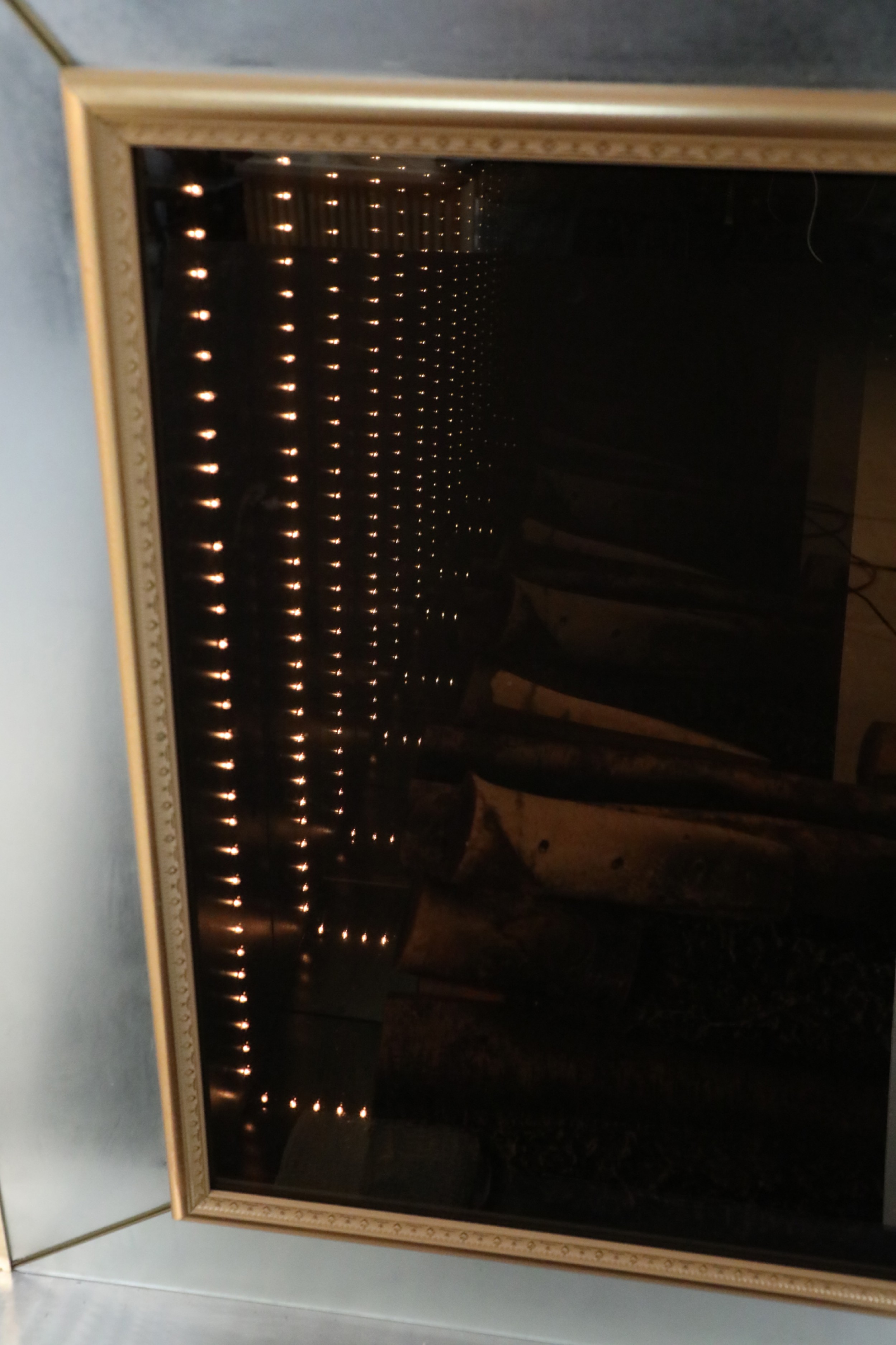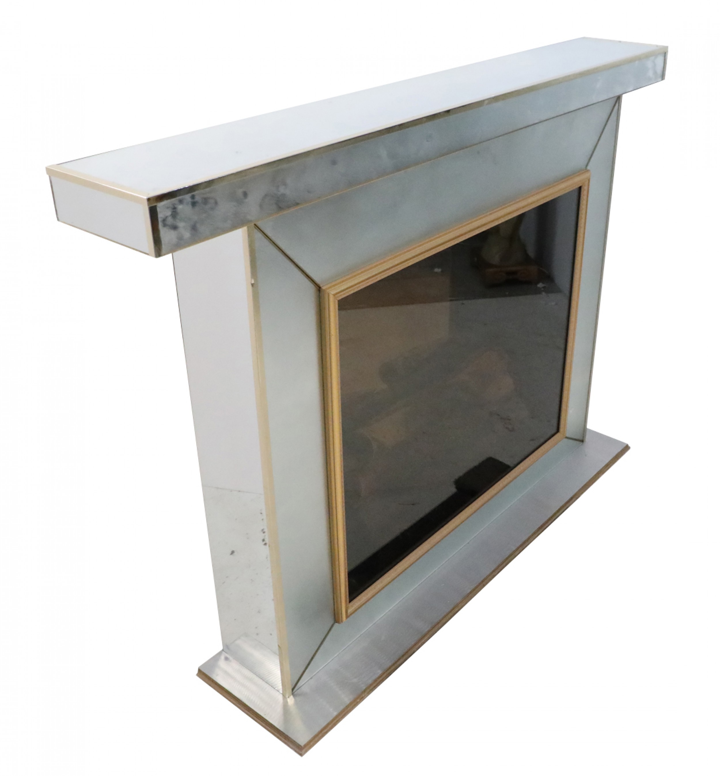 Contemporary Mirror and Gilt Metal Fireplace with Infinity Mirror Interior