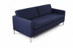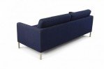 Contemporary 3-seat sofa with navy blue upholstery, silver metal legs, and two removable seat and back cushions.