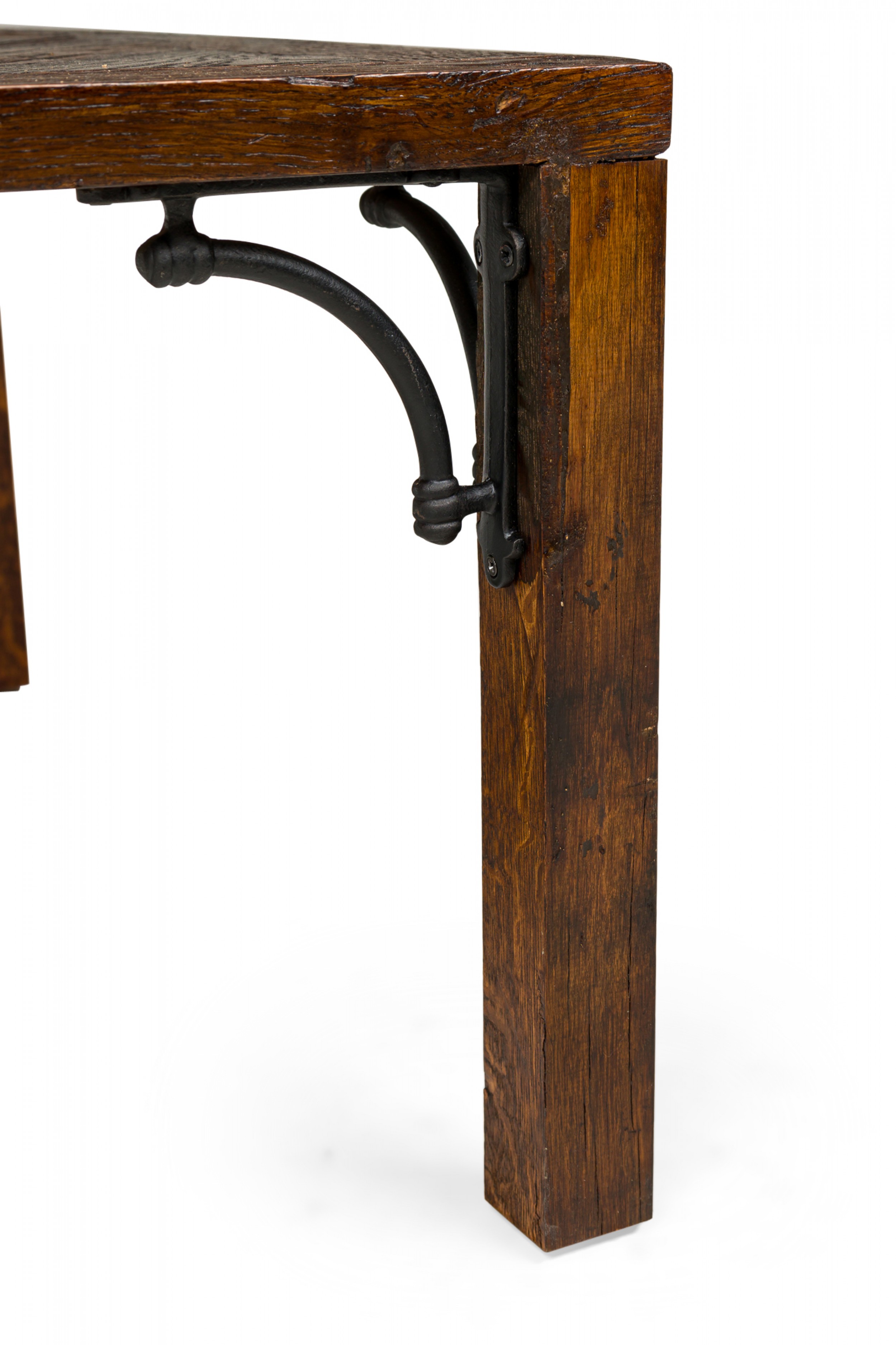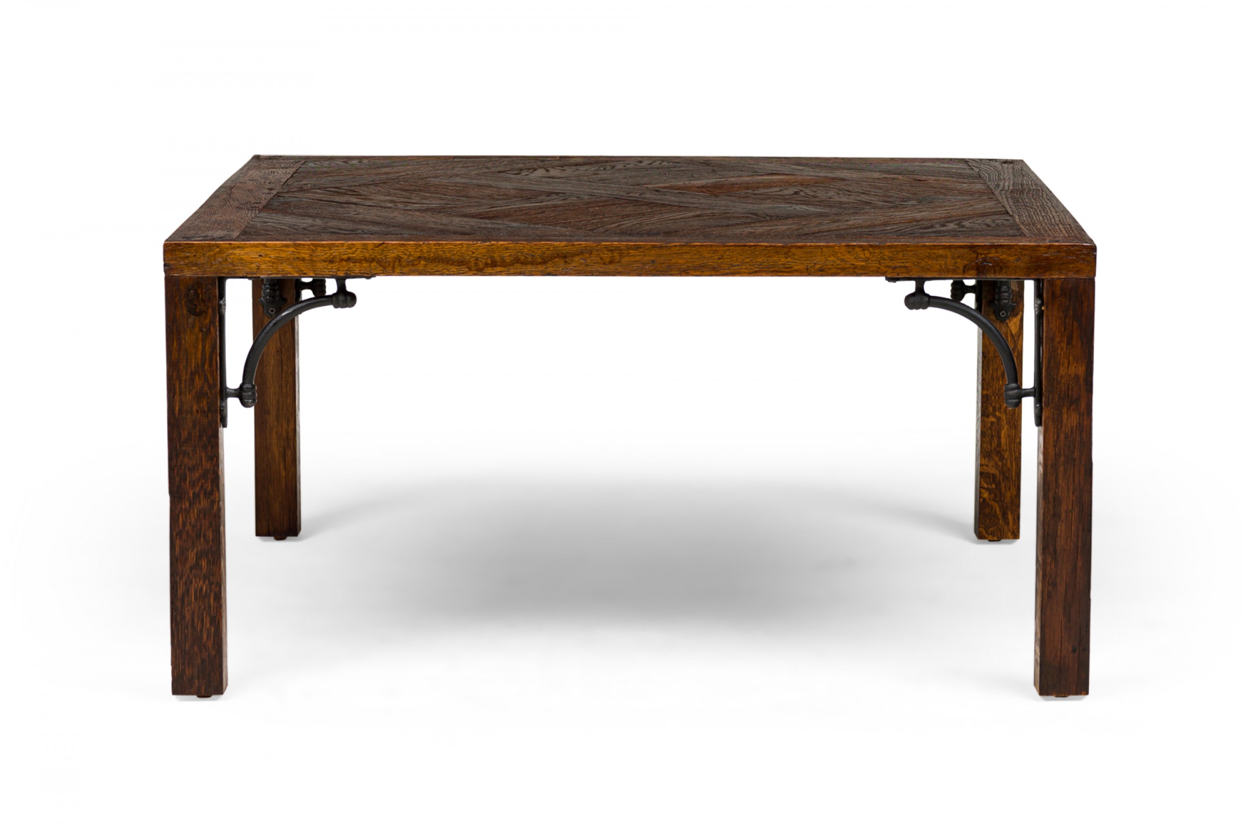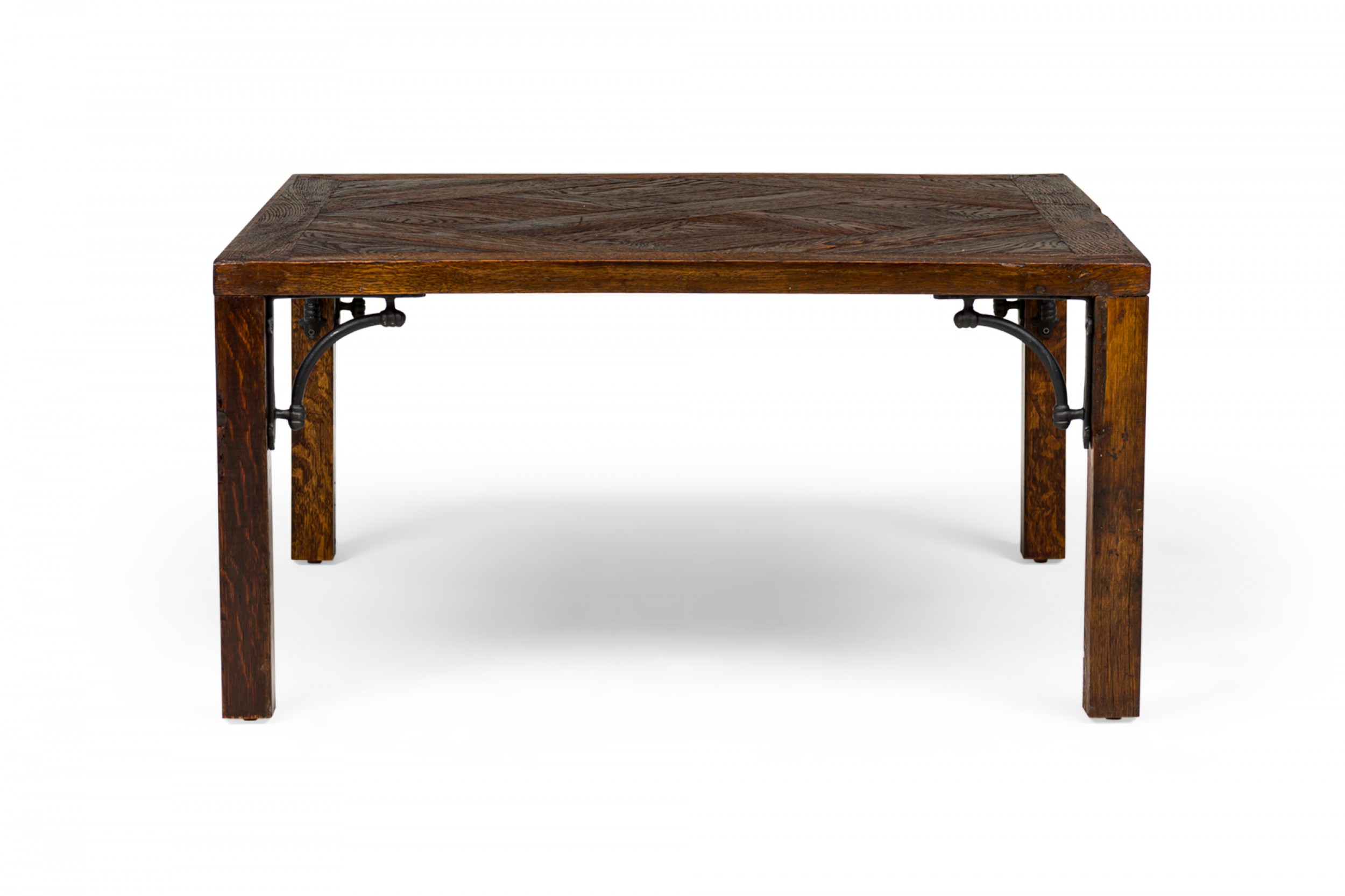 Style: Contemporary/Post-War Design Materials & Techniques: Inlay, iron, metal, wood Category: Tables Good; Wear consistent with age and use