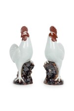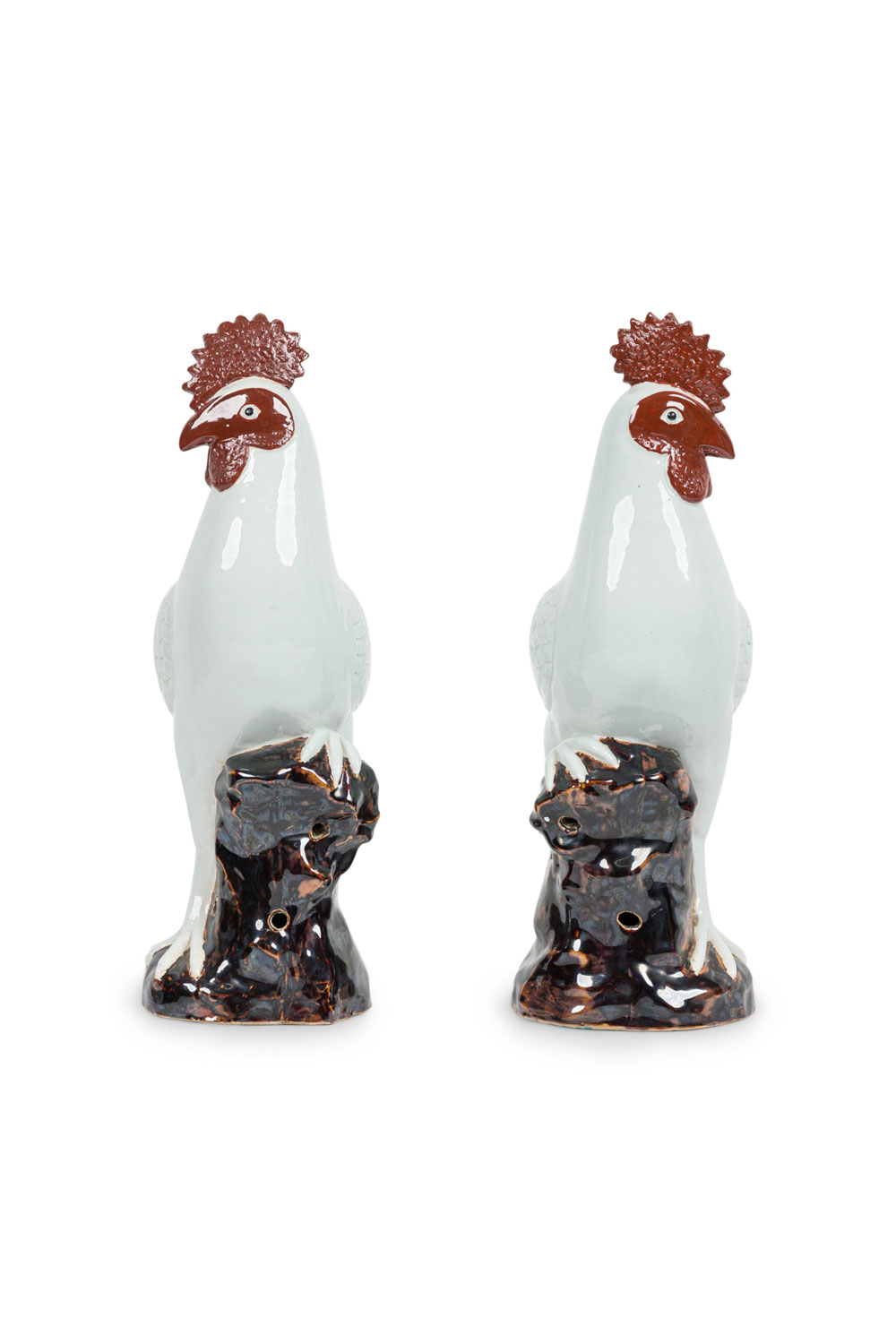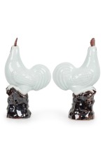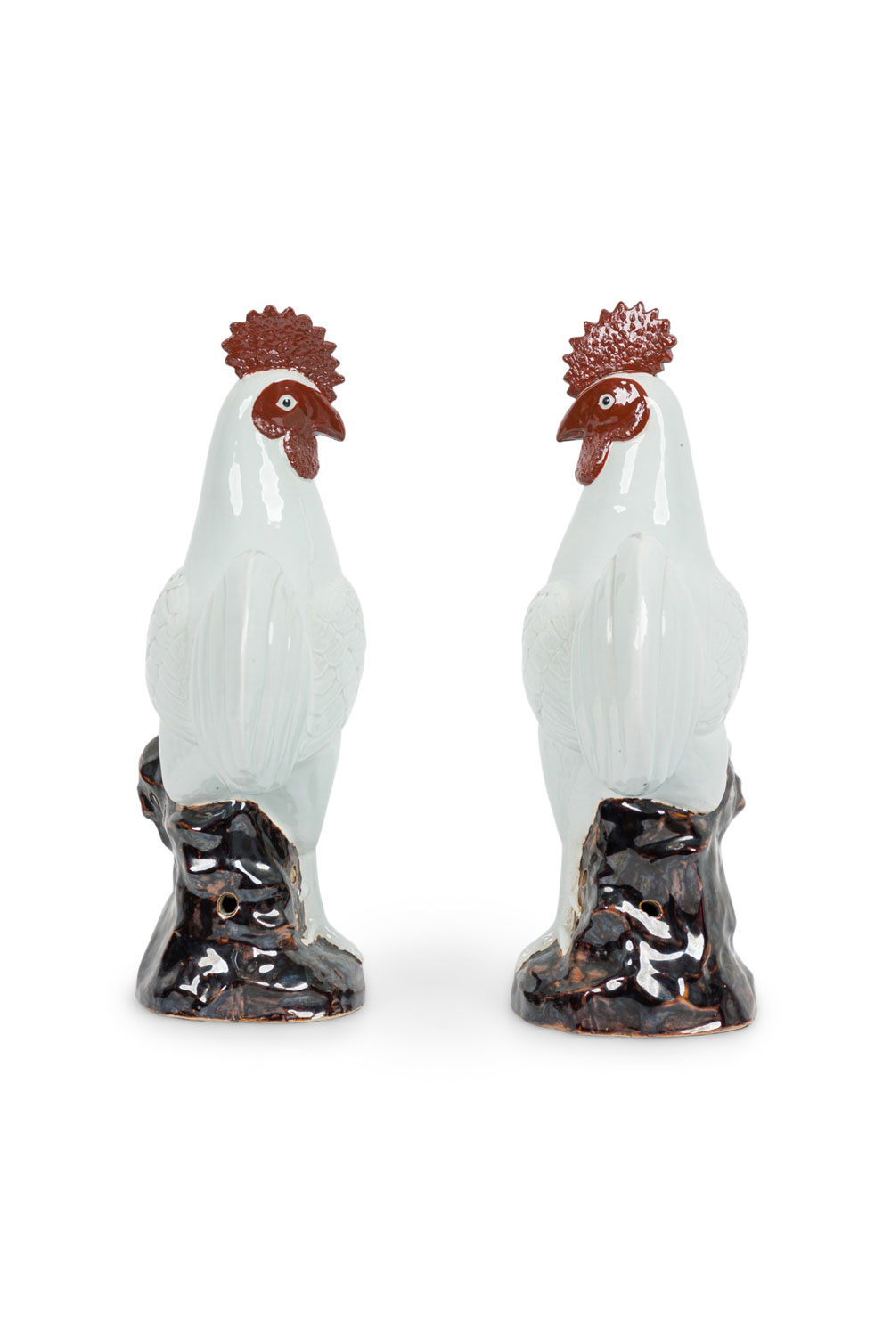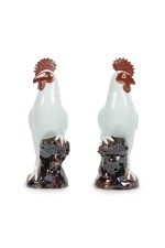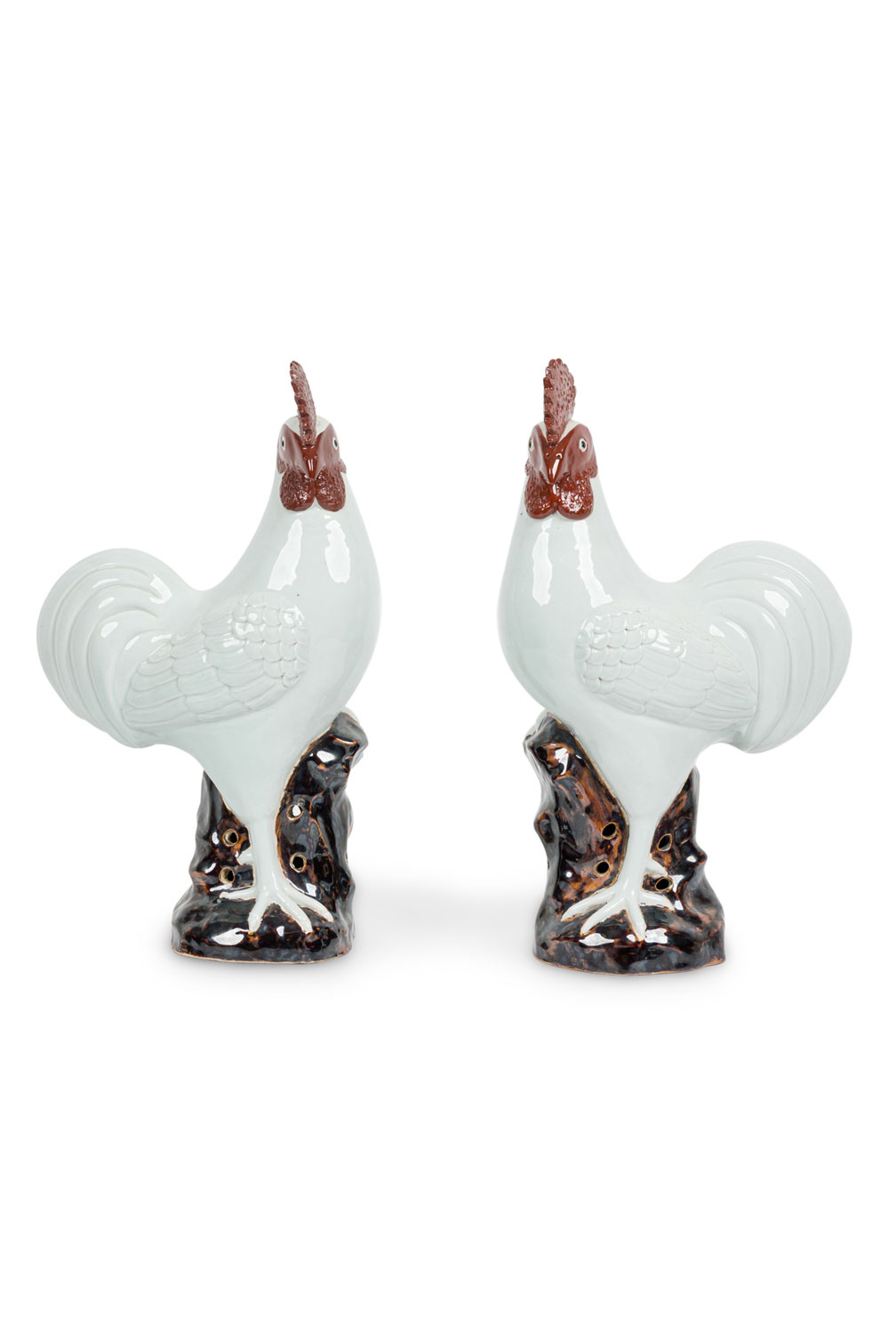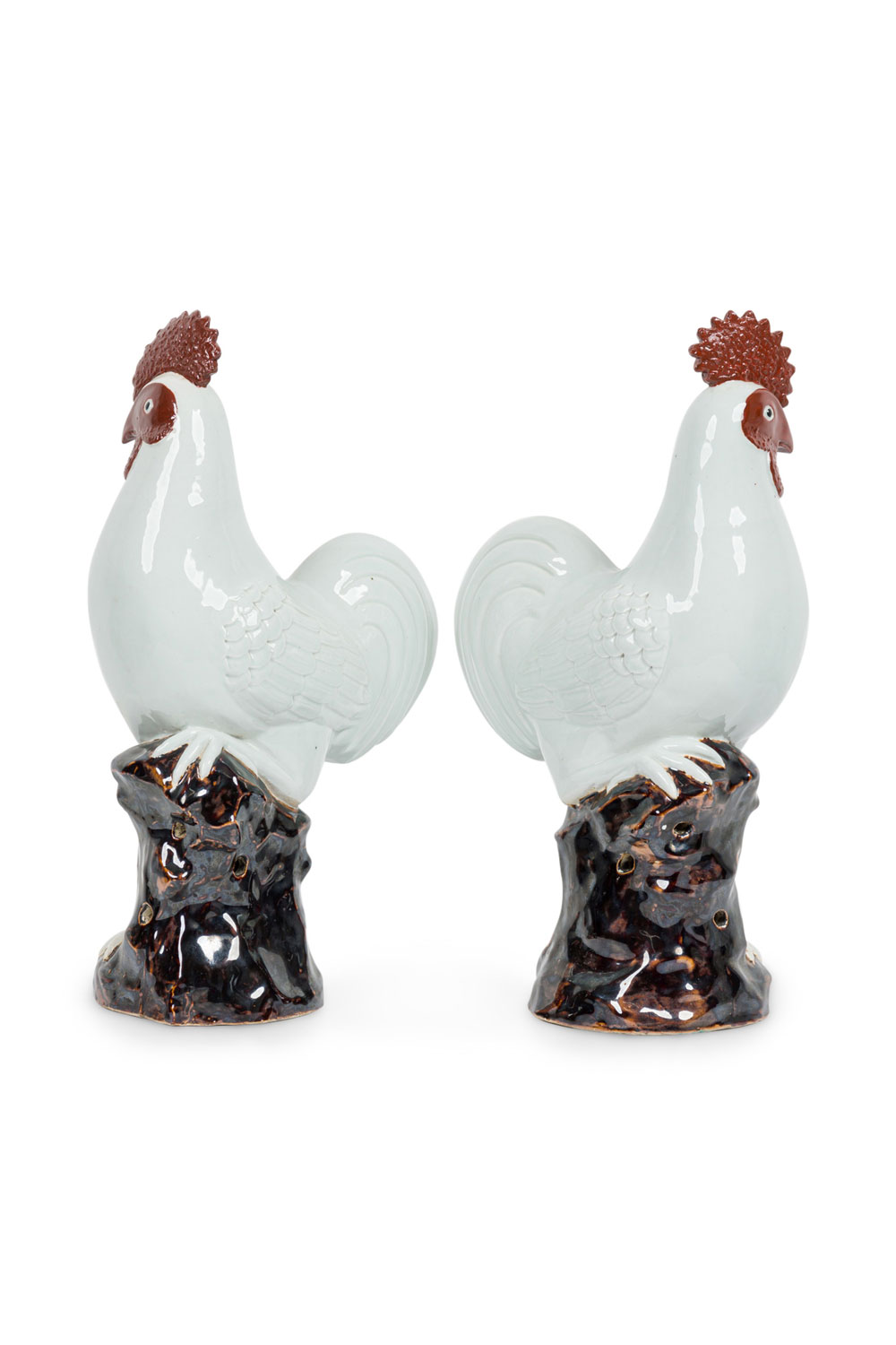 Pair of De Gournay of London Contemporary Porcelain Roosters