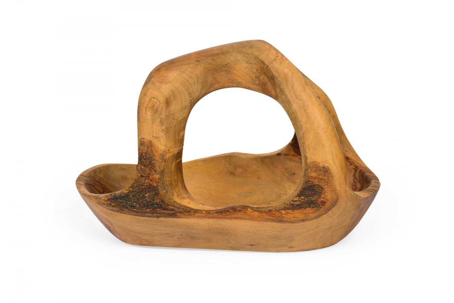 Contemporary Rustic Modern Organic Form Olive Wood Basket